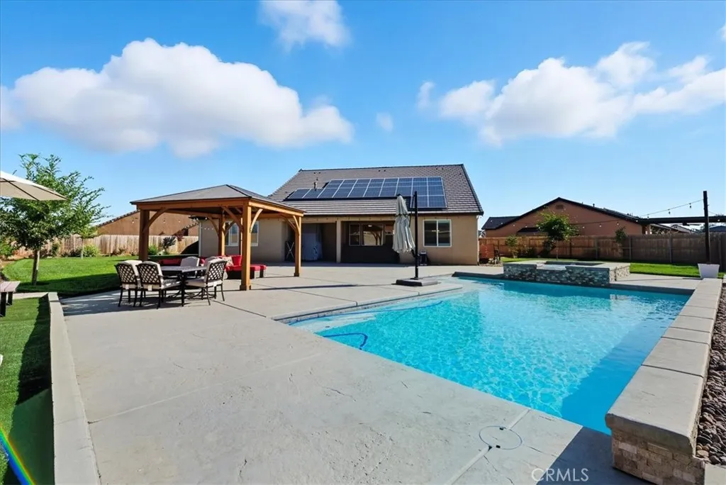 Welcome to 1801 Tamworth, a stunning single-story home set on a spacious corner lot within a quiet cul-de-sac. Designed for both comfort and style, this residence offers over 2,400 sq. ft. of thoughtfully planned living space with modern upgrades throughout. Step inside to find warm wood-look tile flooring, a bright open-concept layout, and an upgraded kitchen featuring quartz countertops, custom backsplash, and stainless steel appliances. The luxurious primary suite boasts dual vanities, his-and-hers closets, and a spa-inspired bath. Outdoors, enjoy your very own backyard retreat with a sparkling pool complete with Baja shelf and spa, stamped concrete decking, and a covered patio ideal for entertaining. A pergola seating area and fully landscaped yard provide the perfect blend of relaxation and function. Additional highlights include ample storage, energy-efficient solar (with no true-up to date), and proximity to desirable schools. This is a move-in ready home where every detail has been designed with modern living in mind! Schedule a showing today!