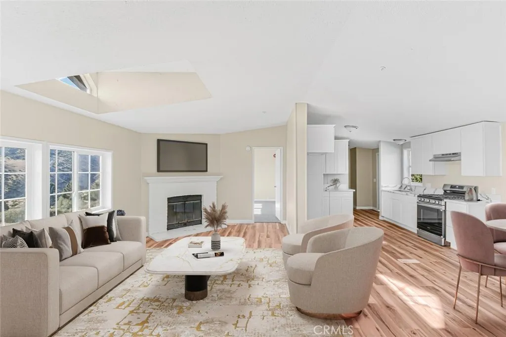 Freshly painted inside and out, this beautifully updated home welcomes you with crisp new colors that perfectly complement its breathtaking setting. Step into the fully remodeled kitchen, where brand-new cabinets, countertops, stainless steel appliances, sink, and fixtures offer both style and functionality. The dine-in kitchen is framed by an abundance of windows, flooding the space with natural light and showcasing the incredible panoramic views that surround the entire home. Brand new vinyl plank flooring runs through all common areas and bathrooms, while soft new carpet adds warmth and comfort to each of the spacious bedrooms. Updated light fixtures and new faucets, toilets, and showerheads in the bathrooms ensure a modern, move-in ready experience. The home also features a cozy wood-burning fireplace in the living area, an indoor laundry space, and energy-efficient dual-pane vinyl windows throughout. Outside, the lot around the house has been cleared of brush and weeds, making way for potential landscaping or expansion. Situated on over 5 acres and serviced by a private water company, this property includes a 20-foot container for additional storage and offers unmatched privacy and VIEWS from every angletruly, it's hard to find better. The wide-open backyard is a blank canvas, ideal for creating your dream outdoor space. All of this is located in a quiet, peaceful setting with endless potential. This is a rare offeringcome see the property and experience the views for yourself!