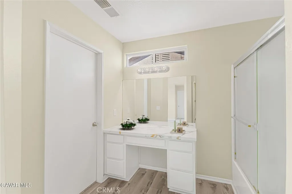 This stunning and spacious home boasts fresh full interior and exterior paint, giving it a crisp, move-in ready feel. The beautifully updated kitchen features freshly painted cabinets, brand-new countertops, stainless steel appliances, a new sink, faucet, and garbage disposal, making it a chef's delight. The entire downstairs and all upstairs bathrooms showcase brand-new plank flooring, while the stairs and bedrooms are complete with new carpet for comfort. All bathrooms, including the downstairs and upstairs hall baths, have been upgraded with new vanity tops, painted cabinets, new lighting, fans, faucets, and toilets, along with fiberglass tub/shower combos. The luxurious upstairs Master Suite offers new vanity tops, painted cabinets, dual sinks plus a makeup desk, a fiberglass tub/shower combo with glass sliding doors, new faucets, lights, toilet, and a walk-in closet. One additional upstairs bedroom is exceptionally large, perfect for multiple uses, and a second bedroom downstairs has its own ensuite bath for added convenience. The home also features two spacious living areas, a formal dining area, wide stairway and hallway upstairs, central heat and air, and a convenient indoor laundry room. Outside, enjoy new grass in the front yard, while the backyard is mostly concrete for low maintenance, paired with a sparkling pool and spa, a covered patio area, and a 3-car garage. Situated in an excellent location, this rare offering is perfect for large householdscome see it today before it's gone!