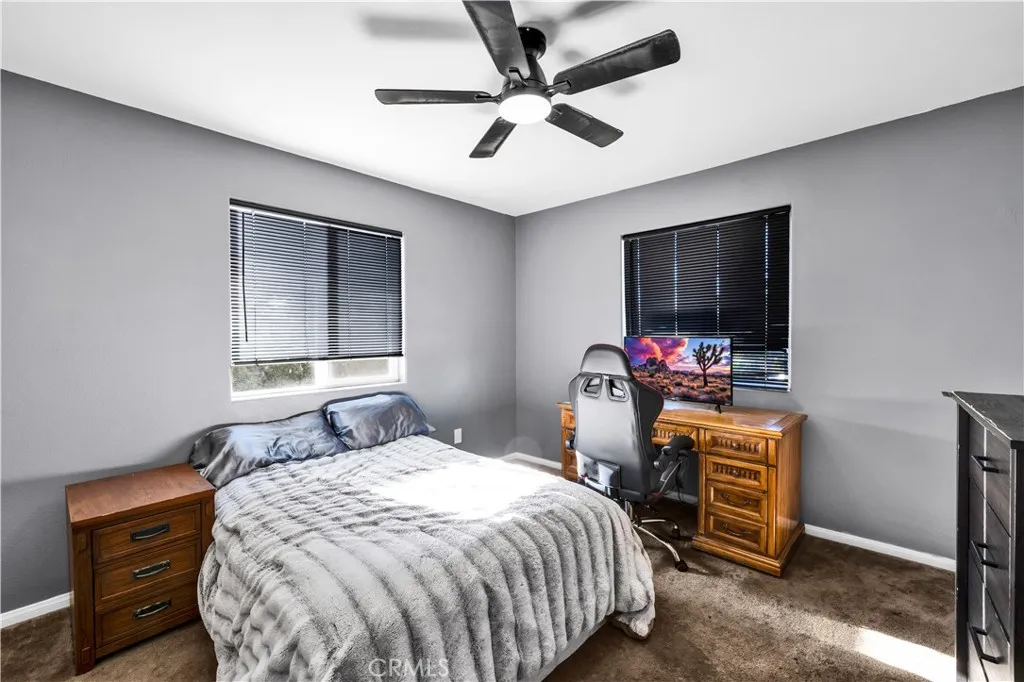 Charming Storey Park home with stunning views & thoughtful upgrades is available now for your consideration. This beautifully maintained 3-bedroom, 2-bathroom home offers the perfect blend of comfort, functionality, and desert charm. Located on an elevated, nearly half-acre lot, you'll enjoy sweeping mountain views and a front-row seat to the towns 4th of July fireworks from your own front porch. Inside, the home features vaulted ceilings and built-in niches, creating a spacious and airy ambiance. The expansive kitchen is a dream for any home chef, boasting ample storage, boundless counter space, and a sit-up bar perfect for everyone. French doors off the dining area lead to a covered back patio, where you can unwind in the newer jacuzzi and take in the peaceful desert evenings. The finished garage includes a utility sink and pull-down stairs for easy access to attic storagean ideal setup for hobbyists or those needing extra space. Outdoors, the property has mature Joshua Trees, mulberry, blooming roses, and native cacti. There is plenty of room to garden, entertain, or expand, as this spacious lot is ready for your vision. Close to hiking, Joshua Tree National Park, shopping and dining -dont miss this opportunity to own a slice of the high desert living in one of Yucca Valleys most desirable communities!