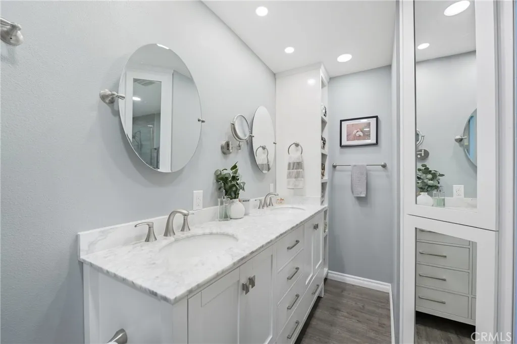 Welcome home is the feeling youll experience as you step into this beautiful single-story gem. Totally remodeled from top to bottom, it features 2 bedrooms, 2 bathrooms, and vaulted ceilings. It offers the perfect blend of relaxing comfort and modern functionality in a highly desirable location. Whether youre a first-time buyer, downsizing, or looking for a smart investment, this property checks all the boxes. Step inside and unwind in an open-concept living and dining area with abundant natural light, updated flooring, and neutral finishes that will make it easy to personalize. The well-appointed kitchen features modern appliances and ample cabinet space. This home also includes lots of charming custom upgrades that you simply must see! Roll into your mornings with coffee or wind down in the evenings as you dine alfresco in your private patio garden, surrounded by fragrant fruit trees, flowers, and foliage. Additional features include a direct line from the entrance to your newly upgraded garage, which has space for two cars and a motorcycle. Just steps from the front door, youll have access to community amenities, such as a pool, spa, and exceptionally well-maintained green spaces. Conveniently situated near shopping, dining, schools, and major commuting routes, this townhouse offers low-maintenance living while maintaining a vibrant lifestyle. Dont miss your opportunity to claim this move-in-ready treasure as your own.