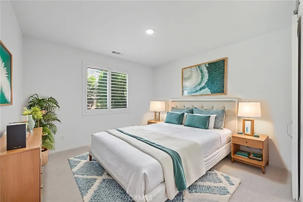 Nestled in the Skyview tract of Terramor, this single-story residence combines modern upgrades with the convenience of low-maintenance living. Located at the end of the street, the home has just one neighboring unit on one side, with the other side set along a peaceful neighborhood street that enhances its airy setting. With no direct neighbors behind, the property enjoys a more open backdrop that adds to its sense of privacy. The bright kitchen is the heart of the home, featuring a large center island, quartz countertops, a pantry, a gas stove, and recessed lighting. It opens seamlessly into the living space, creating an inviting atmosphere thats ideal for everyday comfort or gathering with family and friends. The primary suite includes a walk-in closet and en-suite bath, while two additional bedrooms provide flexibility for guests, an office, or hobbies. Fresh interior paint, new bedroom carpet, upgraded shutter window coverings, and luxury laminate wood flooring make it move-in ready. Additional upgrades include paid solar panels, savings on monthly energy bills while reducing your environmental footprint, and a tankless water heater that provides efficiency, reliability, and hot water on demand. Altogether, these thoughtful features create a home that feels modern, effortless, and ready to enjoy from day one. The backyard is thoughtfully designed for both relaxation and entertaining. A paver patio offers the perfect spot for outdoor gatherings, while the artificial turf keeps maintenance simple. Indian Laurels line the perimeter, offering a canopy of greenery, natural s