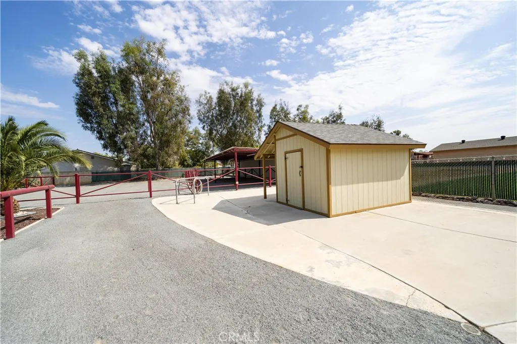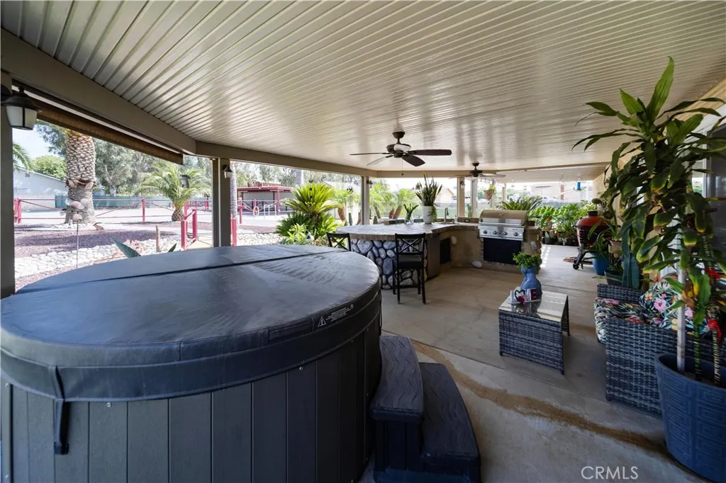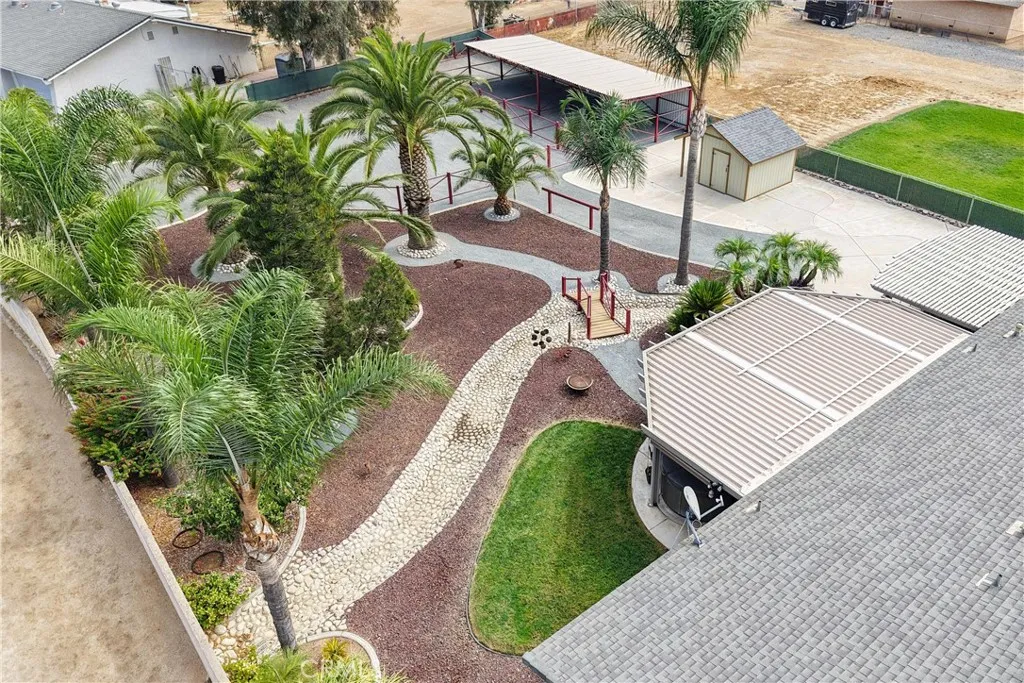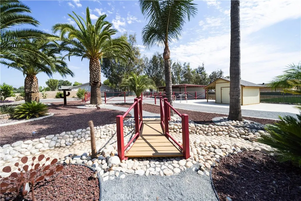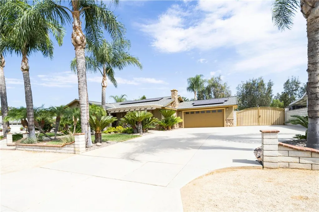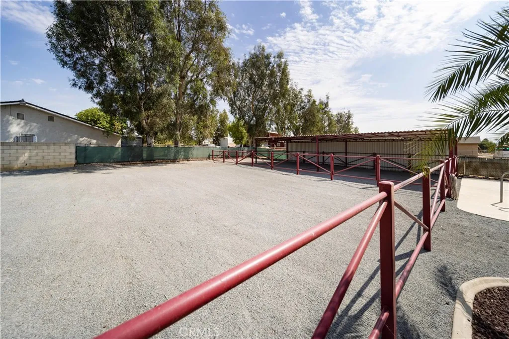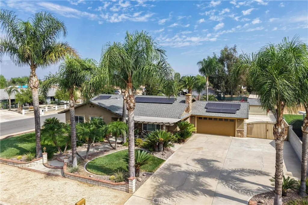 Location, Location, Location close to all freeways 91, I-15, 215, 10, and 60 fwy. Discover your own private equestrian paradise on nearly half an acre! This exceptional 4-bedroom, 2-bathroom single-story home is nestled on a peaceful cul-de-sac in desirable Jurupa Valley. With 1,749 square feet of thoughtfully designed living space and an expansive 20,473 square foot lot, this property offers the perfect blend of luxury living and rural charm. Step inside to discover elegant crown molding and beautiful laminate flooring throughout, complemented by modern recessed lighting and surround sound system. The spacious living room centers around a cozy fireplace, creating the perfect gathering space for family and friends. The chef-inspired kitchen is a true showstopper, featuring stunning granite countertops, designer backsplash, stainless steel appliances, convenient double ovens, and abundant cabinet storage. Both bathrooms have been upgraded with granite countertops and luxurious shower installations. The backyard is an entertainer's oasis featuring a built-in BBQ with sink and relaxing spa. Mature palm trees provide natural beauty while an abundance of fruit trees offer fresh apples, lemons, limes, pomegranates, pears, guava, and exotic dragon fruit right in your backyard. Horse enthusiasts will love the horse stalls and spacious storage shed. The convenient washer and dryer hookups in the garage add everyday convenience. RV parking accommodates your recreational vehicles or additional storage needs. The generous lot size offers endless possibilities - perfect space to add a s