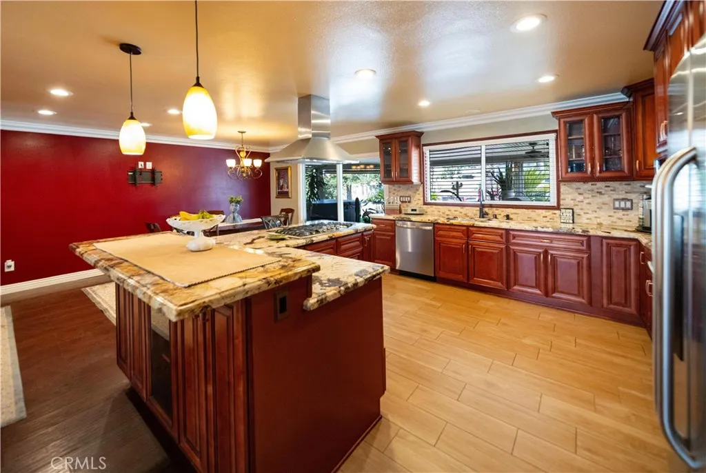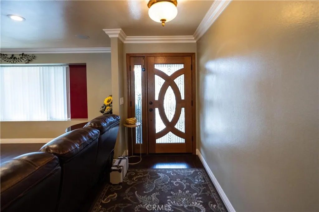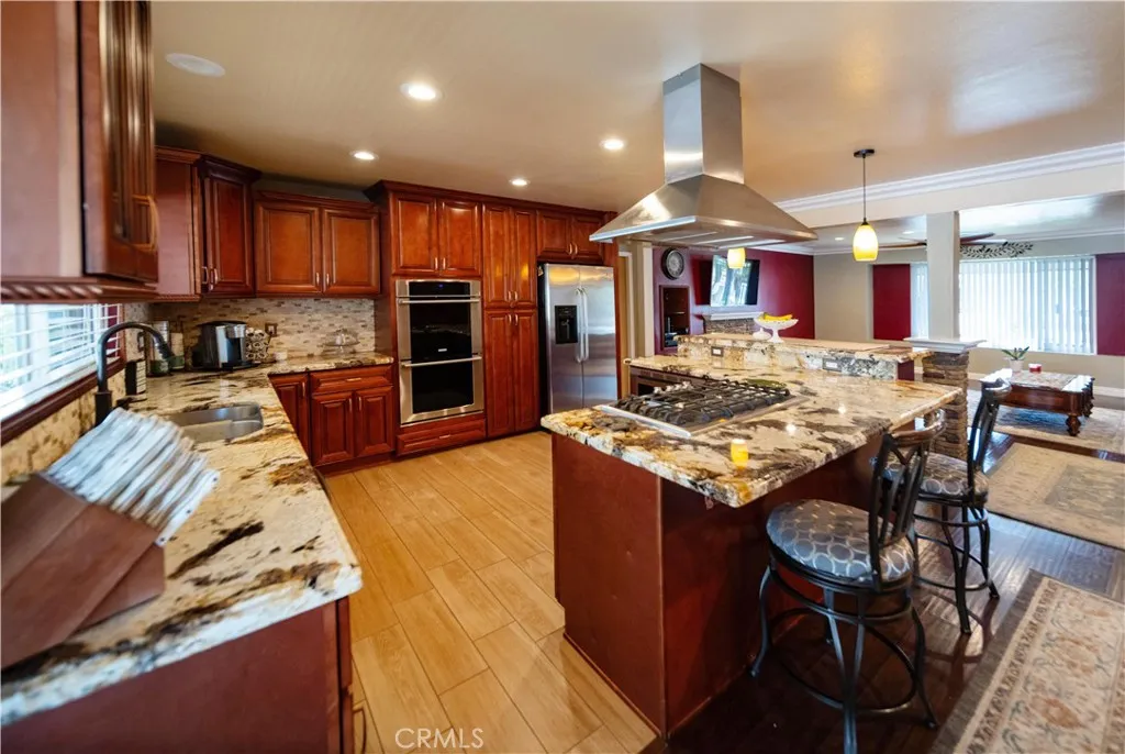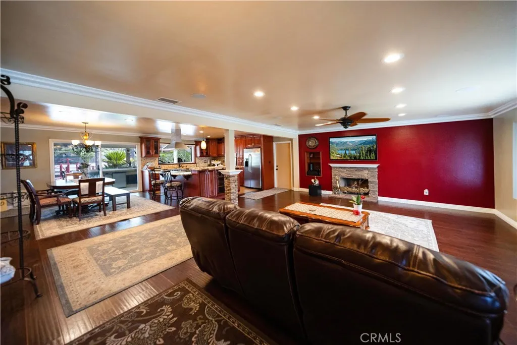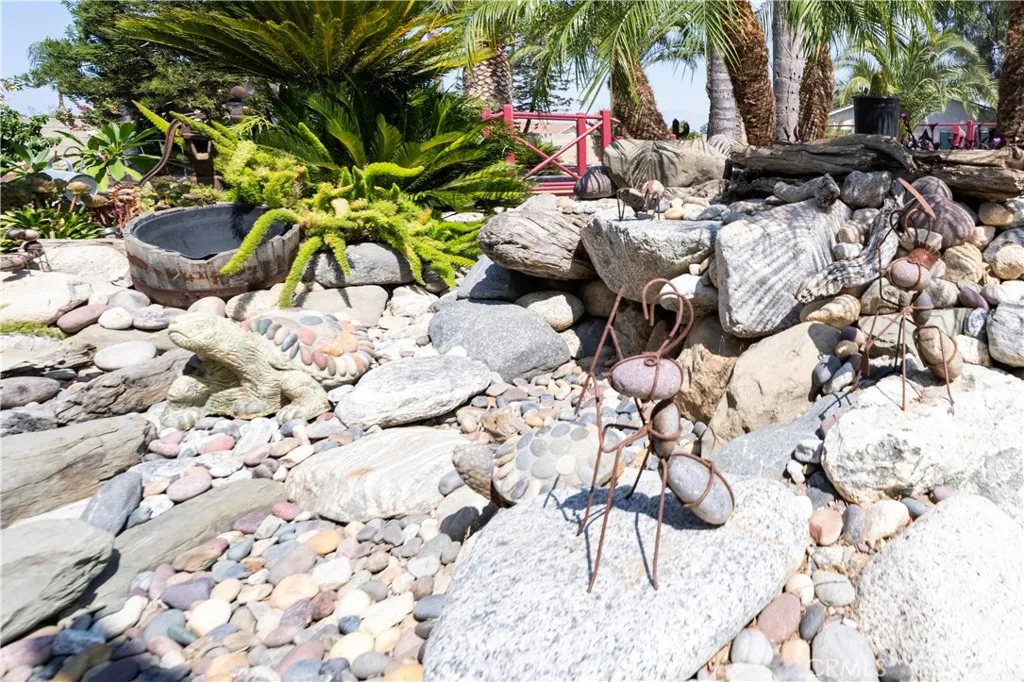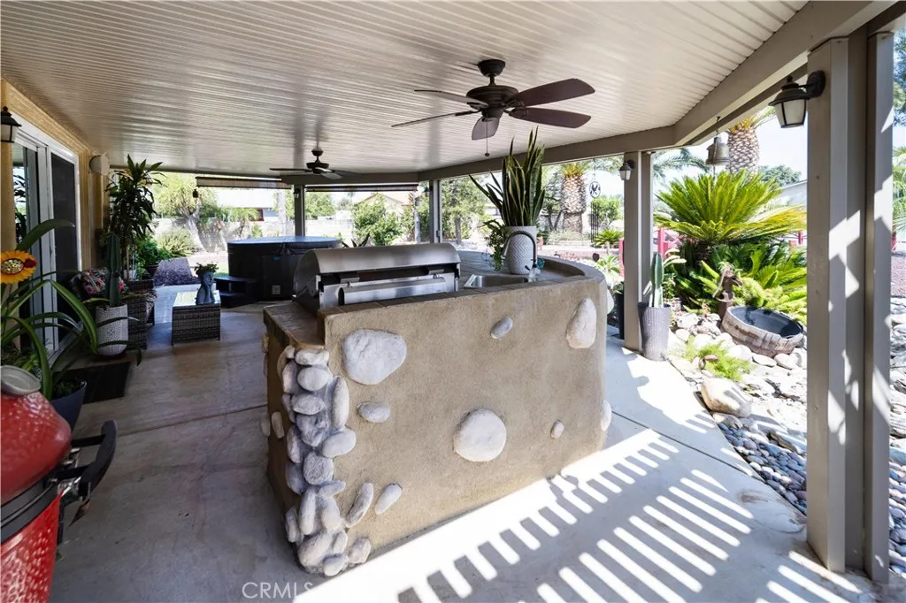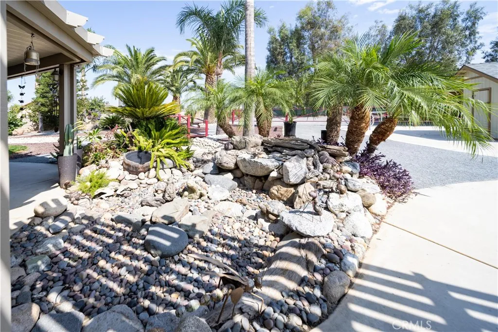 Location, Location, Location close to all freeways 91, I-15, 215, 10, and 60 fwy. Discover your own private equestrian paradise on nearly half an acre! This exceptional 4-bedroom, 2-bathroom single-story home is nestled on a peaceful cul-de-sac in desirable Jurupa Valley. With 1,749 square feet of thoughtfully designed living space and an expansive 20,473 square foot lot, this property offers the perfect blend of luxury living and rural charm. Step inside to discover elegant crown molding and beautiful laminate flooring throughout, complemented by modern recessed lighting and surround sound system. The spacious living room centers around a cozy fireplace, creating the perfect gathering space for family and friends. The chef-inspired kitchen is a true showstopper, featuring stunning granite countertops, designer backsplash, stainless steel appliances, convenient double ovens, and abundant cabinet storage. Both bathrooms have been upgraded with granite countertops and luxurious shower installations. The backyard is an entertainer's oasis featuring a built-in BBQ with sink and relaxing spa. Mature palm trees provide natural beauty while an abundance of fruit trees offer fresh apples, lemons, limes, pomegranates, pears, guava, and exotic dragon fruit right in your backyard. Horse enthusiasts will love the horse stalls and spacious storage shed. The convenient washer and dryer hookups in the garage add everyday convenience. RV parking accommodates your recreational vehicles or additional storage needs. The generous lot size offers endless possibilities - perfect space to add a s