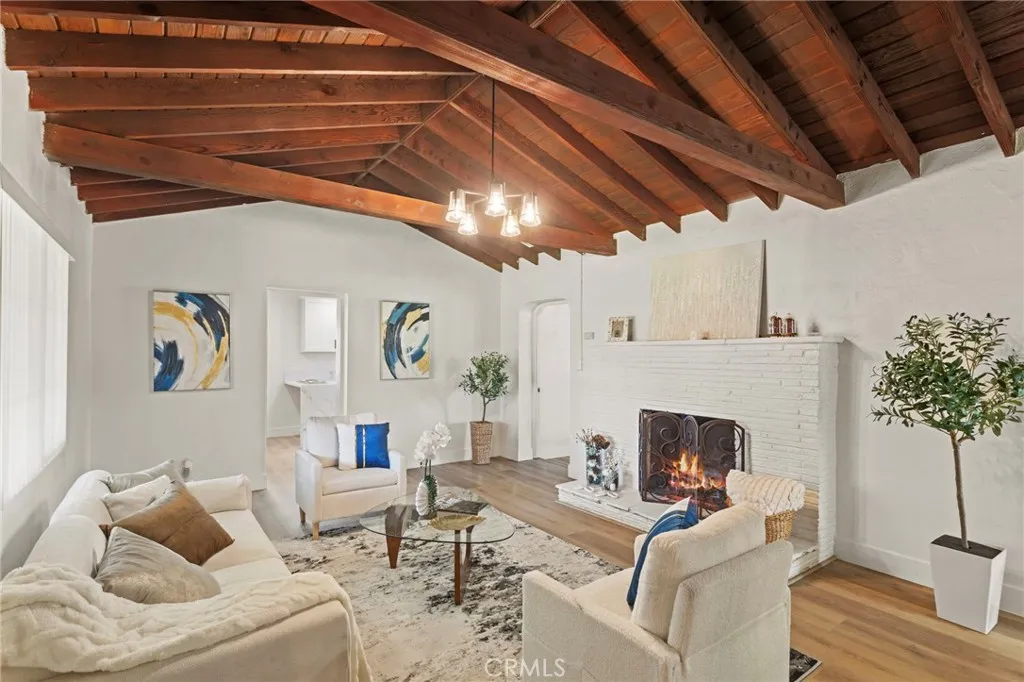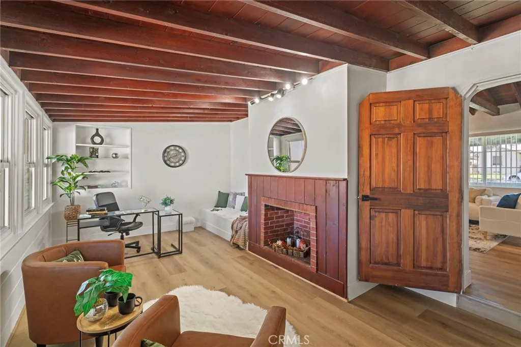 Charming home with Bonus Living Space & Large Lot. Discover this inviting 3-bedroom, 2-bathroom home offering 1,440 sq ft of living space on an expansive 10,193 sq ft lot. As you enter you will notice High ceilings with rustic wooden beams ceiling and a classic fireplace giving it a warm and functional layout. The third bedroom has a lot of natural light creating and inspiring workspace with a reading nook and cozy fireplace or it can be used as either a comfortable living space or bedroom giving you even more options. The garage has been converted into a private living space with its own bathroom and entranceperfect for guests, or extended family. Enjoy the convenience of a long driveway with ample parking and back-alley access to the property. With its versatile spaces and generous lot size, this home offers comfort, potential, and endless possibilities!
