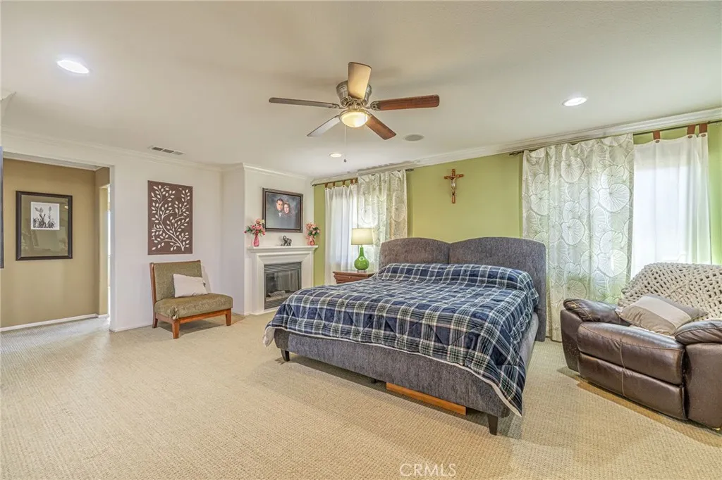 Welcome to this beautiful former model home! Featuring 3 bedrooms, 2.5 bathrooms, plus a spacious loft that can easily be converted into a 4th bedroom. The open layout includes a family room with a stone fireplace, a modern kitchen with granite countertops, upgraded cabinetry, and extensive 16x16 tile flooring throughout the downstairs. Enjoy year-round comfort with a dual-zone HVAC system featuring separate upstairs and downstairs controls. Upstairs you'll find the bedrooms and loft, with the master suite offering its own retreat and a second fireplace. The bedrooms are exceptionally spacious, setting this home apart from others in the neighborhood. Outside, enjoy great curb appeal with mature trees, landscaped planters, and a welcoming entry. Beautifully maintained with extensive upgrades throughout, and just minutes from schools, shopping, and freeway access.