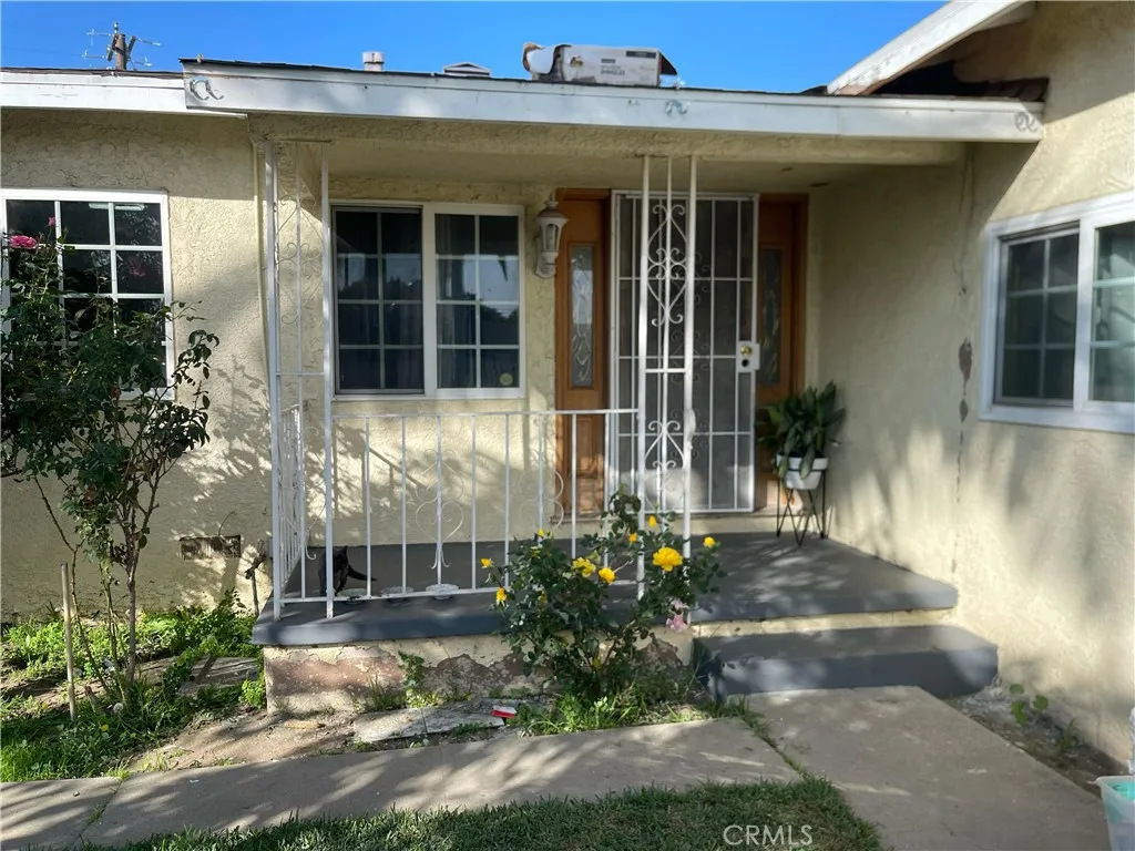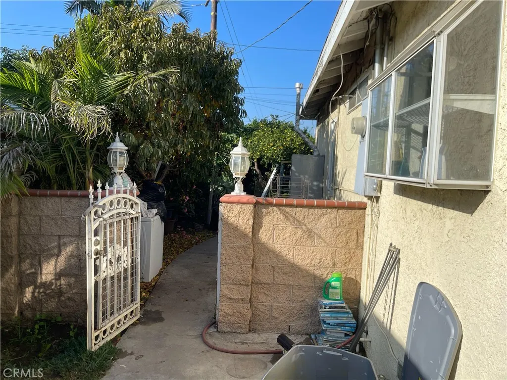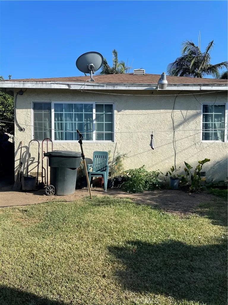 House is Mediterranean style with palm trees in front yard and many fruit trees with fruit in backyard. Backyard is very large with an extra portion behind block wall. Seller has permits for second bathroom. Room to add onto house. Garage can be converted to an ADU. Property sold "as is" condition. Seller to make no repairs. Roof is old. Had some leaks which were repaired.
