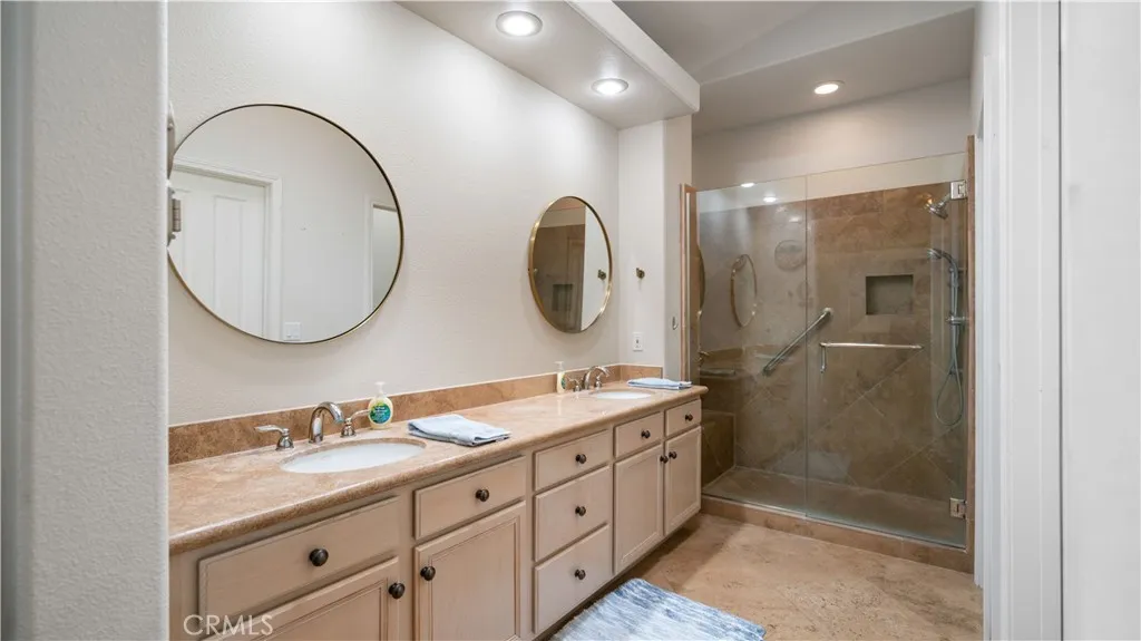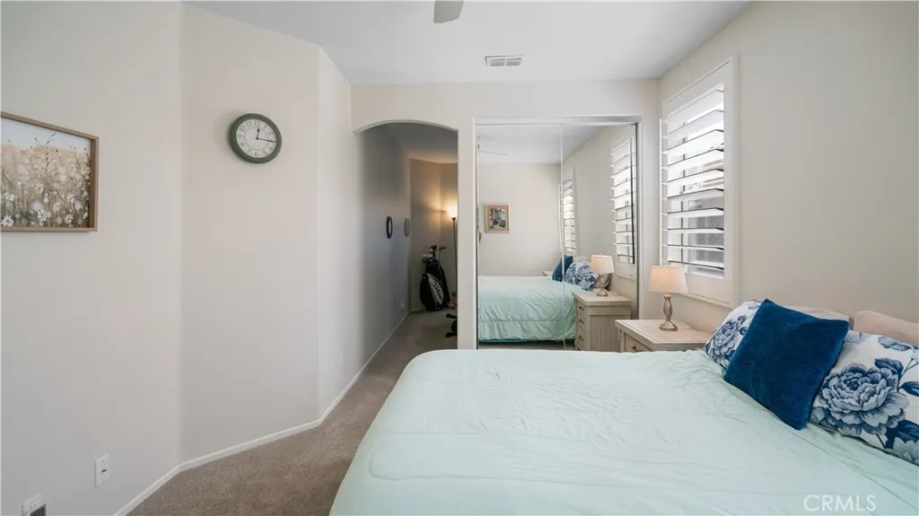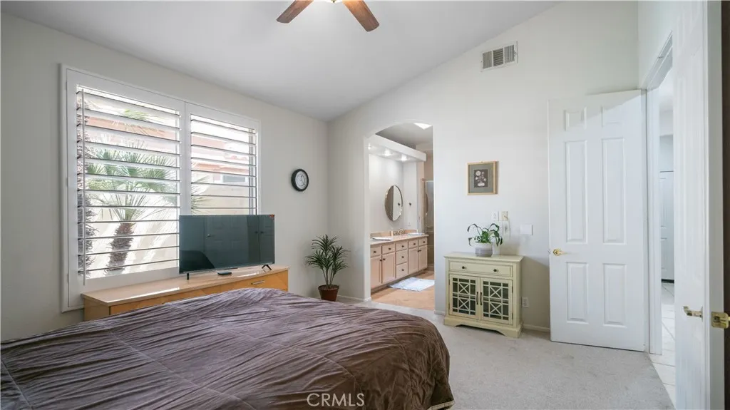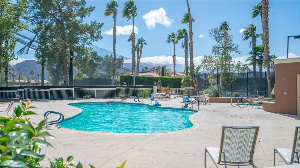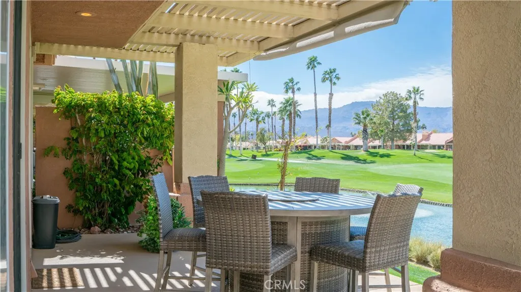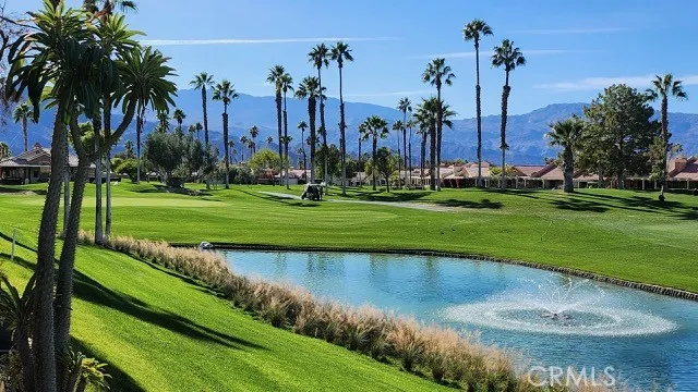 This upgraded and well-maintained home offers 3 bedrooms and 2 bathrooms. The open floor plan and vaulted ceilings in the living room, along with plantation shutters, provide unobstructed views of the golf course and mountains. The kitchen includes ample cabinet space, granite countertops, and appliances such as a dishwasher, gas range, oven, broiler, microwave, refrigerator, and garbage disposal. The master bedroom connects to a bathroom featuring tile finishes, updated step-in tile shower, dual sinks, and walk-in closet. The second bedroom connects to a bathroom with updated step-in tile shower. The third bedroom can also be used as a den or office. Oasis Country Club is a gated community that contains an 18-hole golf course, pools and spas, fitness center, tennis and pickleball courts, and a putting course, all within landscaped grounds This home is being offered fully furnished.