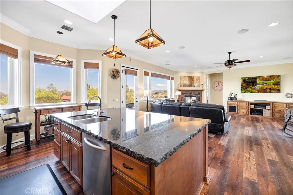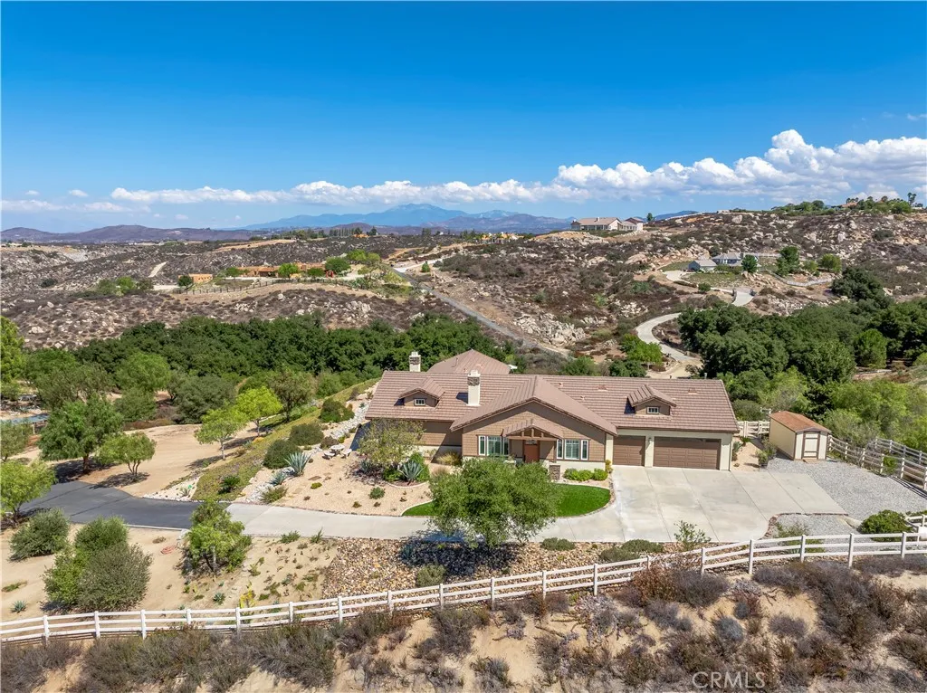 Welcome to your private Wine Country retreat! Generous Price Improvement and ready to sell! Nestled on nearly 5 acres of usable land, this single-story estate captures unparalleled 360-degree views of Temeculas rolling vineyards and stunning sunsets. Designed for both comfort and entertaining, this residence offers 4 bedrooms, 4.5 bathrooms, plus a dedicated office and private automatic gated entrancethe perfect blend of elegance and functionality. This property is eligible to obtain a Short Term Rental Certificate with Riverside County, as of current ordinance rule and newest ordinance rule revision. Inside, youll find a thoughtful floor plan that balances style and space. The home features a formal living and dining room with a cozy fireplace, perfect for intimate gatherings or holiday celebrations. The expansive great room seamlessly opens to the chefs kitchen, creating the ultimate space for entertaining. The kitchen boasts stainless steel appliances, granite countertops, and ample cabinetrya dream for any culinary enthusiast. Additional upgrades include surround sound speakers throughout the house and backyard, a whole-house fan, and a water softener, enhancing comfort and convenience. The primary & one additional secondary bedroom has its own full ensuite bathroom, bedrooms three & four both have a shared ensuite bathroom ensuring privacy for family and guests, while the office provides a quiet, versatile space for remote work or creative pursuits. There is also a fourth full bathroom in the hallway as well as additional half bath by the Great Room. Step outside to em