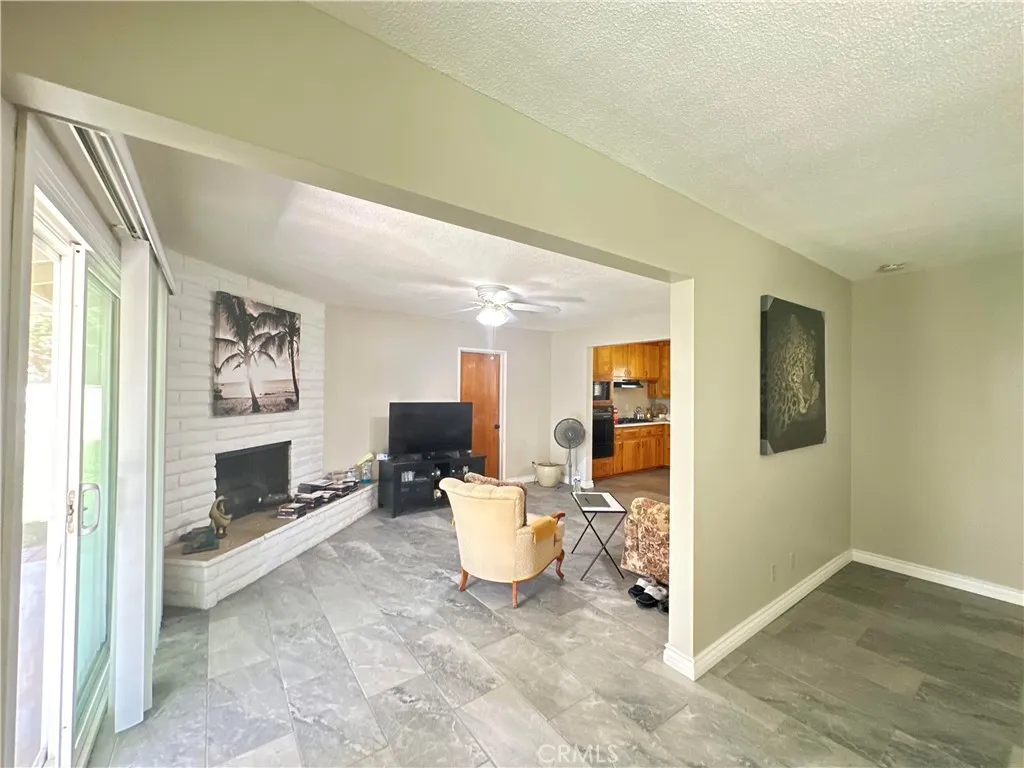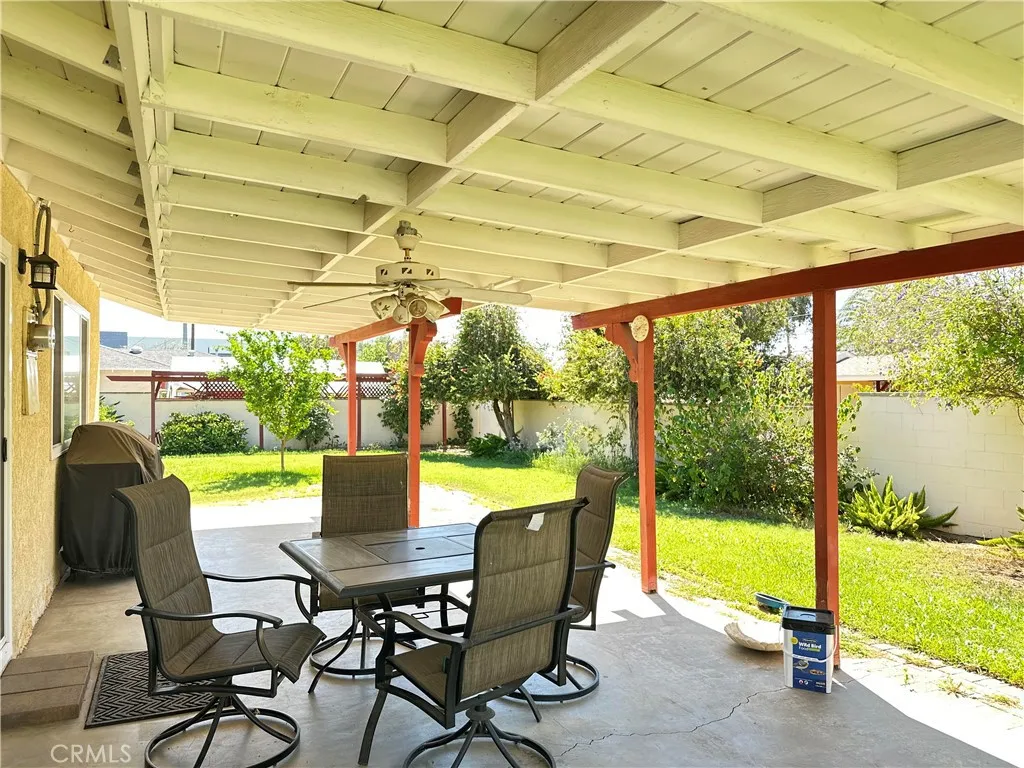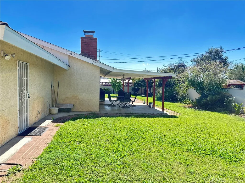 Beautiful and Clean single story home. Open concept with Tile flooring through out. Living room and family room with a cozy fireplace and open to the kitchen with newer kitchen cabinets and Quartz Counter top. New double Pane windows. All bedrooms with ceiling fans. Sliding door will lead you the the back yard patio and nicely landscaped yard with nice trees and flowers including Orange tree. Property has block wall through out back yard that gives you the additional privacy. Back yard has a division to the additional square feet lot in the back yard for anyone that is looking to build another Granny home it includes a storage shed and another small structure for additional storage. Come see this ready to move in home. A must See!!!!!
