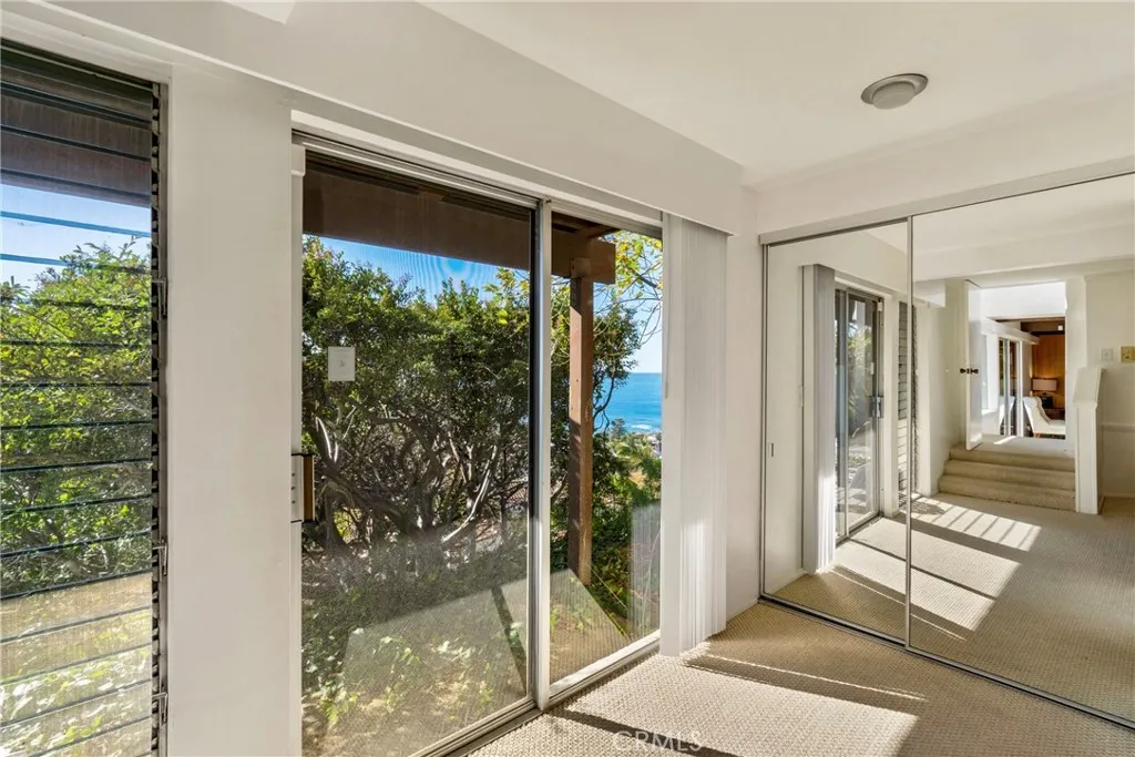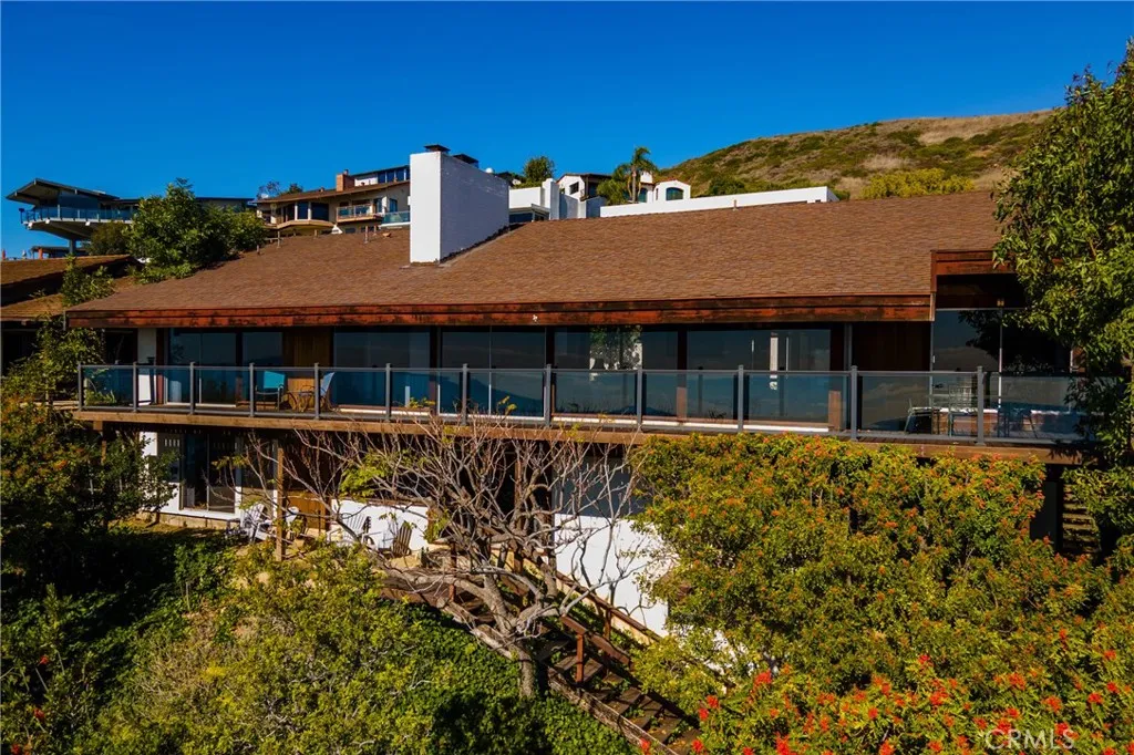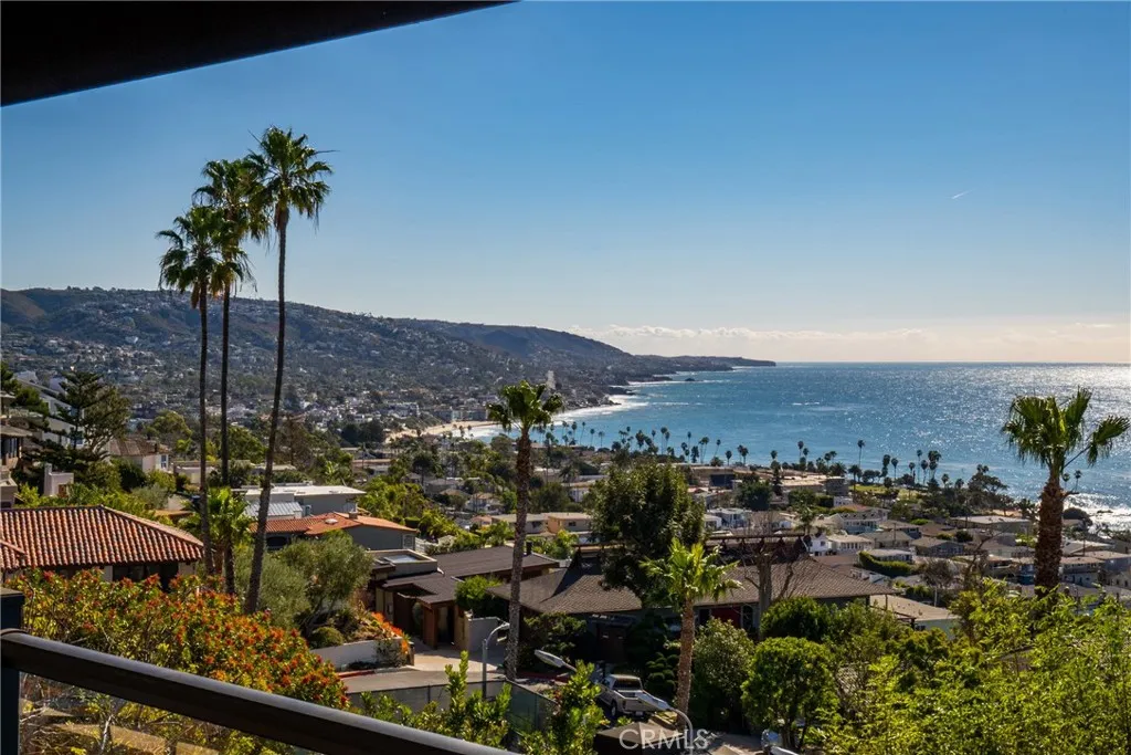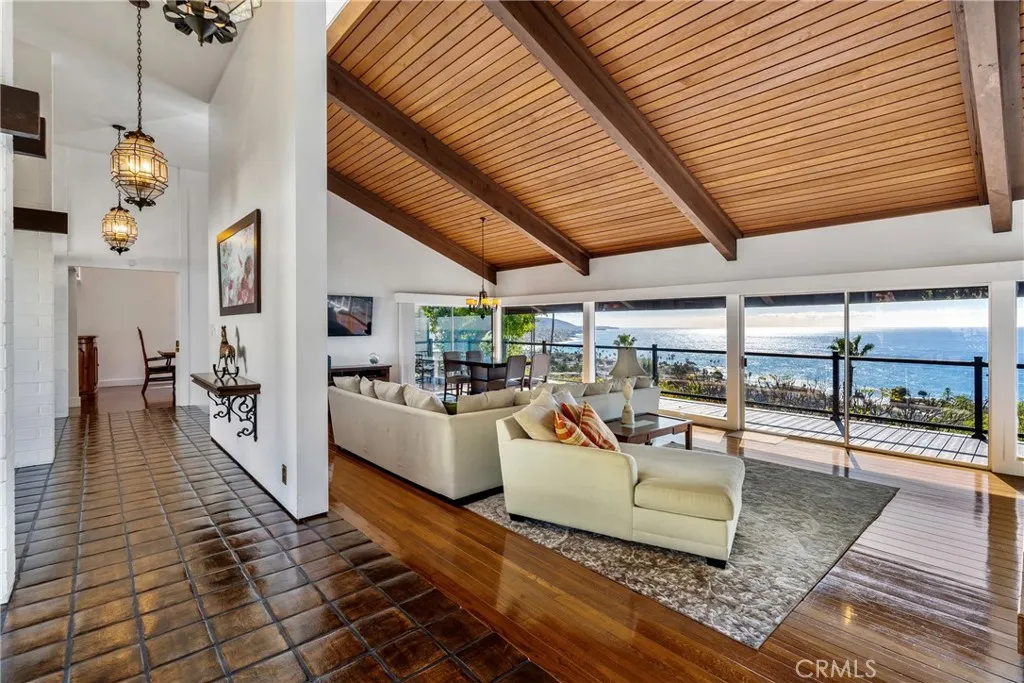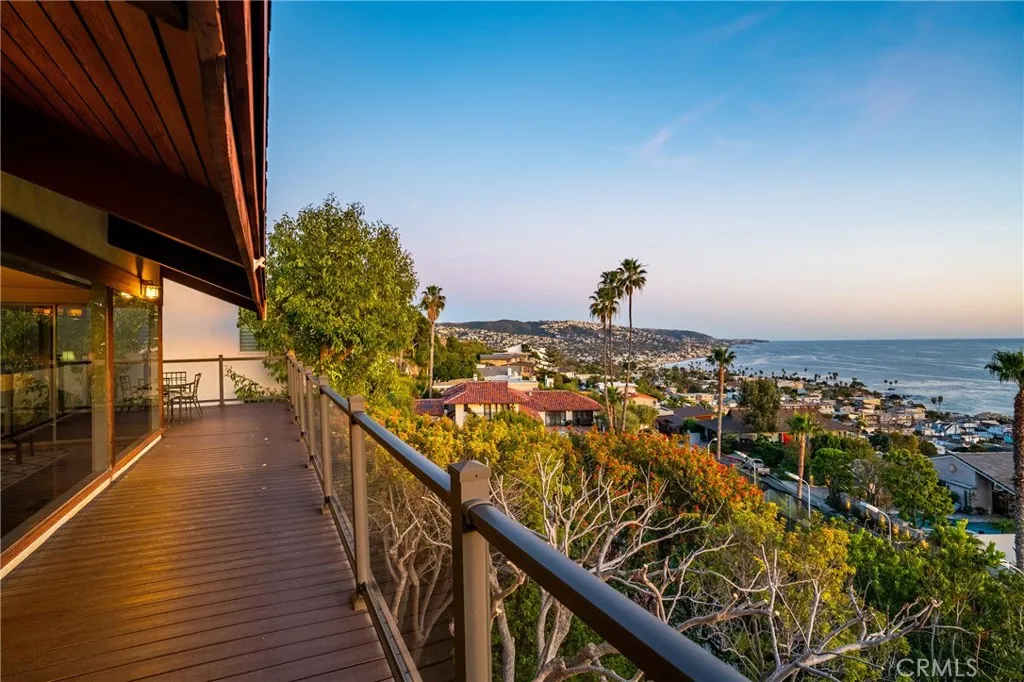 Awe-inspiring, panoramic Coastline, Catalina Island, and City light views from this gated Mid-Century Modern pool home in prestigious Crown Point. Enter the Private Interior courtyard patio which features a large pool (in-ground) surrounded by lush landscaping and a serene fountain. The open floor plan has walls of windows to the expansive ocean views, and a wrap-around patio/deck to lounge or dine alfresco. The Living Room has high-beamed ceilings, a large fireplace, and multiple seating areas from which you can enjoy sunrises over the sweeping Coastline to the south, and golden sunsets over Catalina Island to the north. This Mid-Century Style Charmer has soaring Redwood ceilings, Beautiful original wood floors, and Spanish tiles throughout. Most rooms feature floor-to-ceiling windows and glass doors that access the courtyard or 180-degree ocean-view deck. Three large bedrooms with panoramic views and a den/library (Could be 4th Bdrm) with a fireplace overlooking the patio/pool area offer ample space to enjoy the indoor/outdoor California lifestyle. The main floor primary bedroom suite has floor-to-ceiling windows overlooking Laguna Village, yet is completely private. The two bedrooms on the lower level are separated by a Family Room with another cozy fireplace. This property is situated on a huge street-to-street lot. Enjoy secluded sunbathing by the pool or wander down to Crescent Bay Beach and Village shops/restaurants - all just blocks away. Inquire for more details.