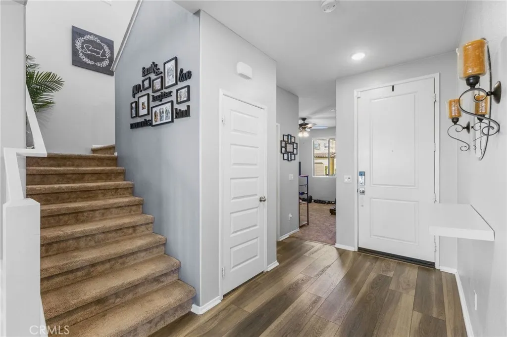 Welcome to this charming two-story home in the highly sought after Atwell Community. A beautifully maintained 2020 build offering modern design, comfort, functionality and zoned for the Beaumont School District!!! This spacious two-story home features 3 bedrooms, 2.5 bathrooms, plus a downstairs office that can easily be converted into a 4th bedroom. Step inside to an open concept living area highlighted by upgraded flooring, ceiling fans throughout, and abundant natural light. The kitchen is a chefs delight with granite countertops, plentiful cabinet space, and a seamless flow into the dining and living areas. Upstairs, youll find all 3 bedrooms and a convenient laundry room. The primary suite includes a walk-in closet and a dual vanity bathroom. This home stands out in the community with its fully landscaped front and backyard, complete with lush grass, an Alumawood patio cover, and an extended concrete slab wrapping around both sides of the property. Additional features include upgraded flooring, blinds throughout, a Hygia water softener, and a fully paid-off solar system for energy efficiency and cost savings (over $45,000 in upgrades). The community features a network of trails that wind through the neighborhood, promoting connectivity with amenities, neighbors, and nature. Enjoy access to four community pools, multiple parks and a catch and release fishing pond providing ample opportunities for recreation and leisure. Move-in ready and built for modern living, this home blends style, comfort, and practicality both inside and out. Dont miss your chance to own one of th