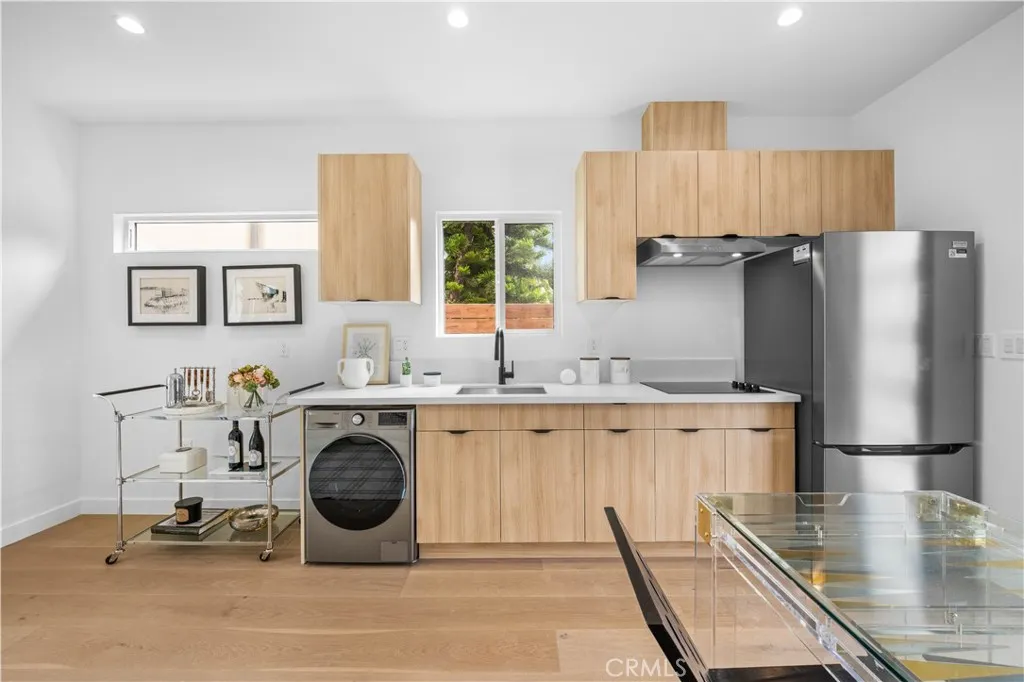 An extraordinary opportunity in one of the Westsides most sought-after neighborhoods, this timeless corner-lot residence has been masterfully renovated and thoughtfully expanded. The main home offers 3 bedrooms and 1 designer bath, filled with natural light through expansive windows and framed by wide-plank oak floors. An open, free-flowing layout connects the living and dining areas to a chefs kitchen with custom cabinetry, quartz surfaces, and premium stainless steel appliances. Complementing the main home, a newly constructed 383 sq ft Accessory Dwelling Unit (ADU) stands as a fully independent residence with its own private entrance. Perfect for multi-generational living, a guest retreat, or income-producing rental, the ADU adds rare versatility and long-term value. Outdoors, curated landscaping blends modern hardscape, a fire-pit lounge, and mature greenery to create an inviting retreat. A six-car parking capacity, including an extra-wide driveway, ensures convenience for residents and guests alike. The location is unrivaledjust 2.5 miles to UCLA, 5 miles to Santa Monica State Beach, minutes to Century City, and one block from the highly regarded Westwood Charter Elementary School. This is more than a home; it is a lifestyle investment combining refined design, income potential, and premier Westside living.