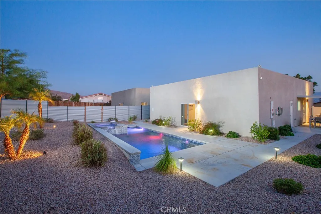 This recently renovated Spanish modern residence is perfectly located in the heart of Desert Hot springs, nestled in the peaceful neighborhood. The home has been carefully maintained and thoughtfully upgraded and decorated. Its tranquil, resort-style yard ensures complete privacy, featuring an updated pool with a waterfall and concealed water features all framed by stunning views of the San Jacinto Mountains. Inside, the kitchen is a culinary delight, boasting a gas range with six burners, a griddle and a high-quality hood. It also includes a spacious side-by-side refrigerator and freezer, enhanced by custom cabinetry and countertops. The generous open floor plan is ideal for both entertaining and relaxation, showcasing elegant high-gloss Spanish tiles, and a dedicated space perfect for a home office or cozy reading nook. The expansive primary bedroom offers direct access to the pool and features a large walk-in closet. The luxurious primary bathroom includes a walk-in shower and custom cabinetry and fixtures that impress. Additional features include a new A/C system installed in 2021, an efficient way to help lower energy costs, and a new hot water heater. With five ceiling fans throughout, comfort is assured. Situated on a spacious lot, away from the bustle of downtown this property is a must-see.
