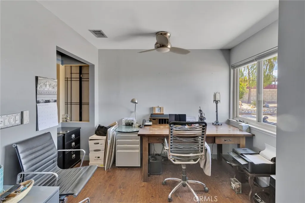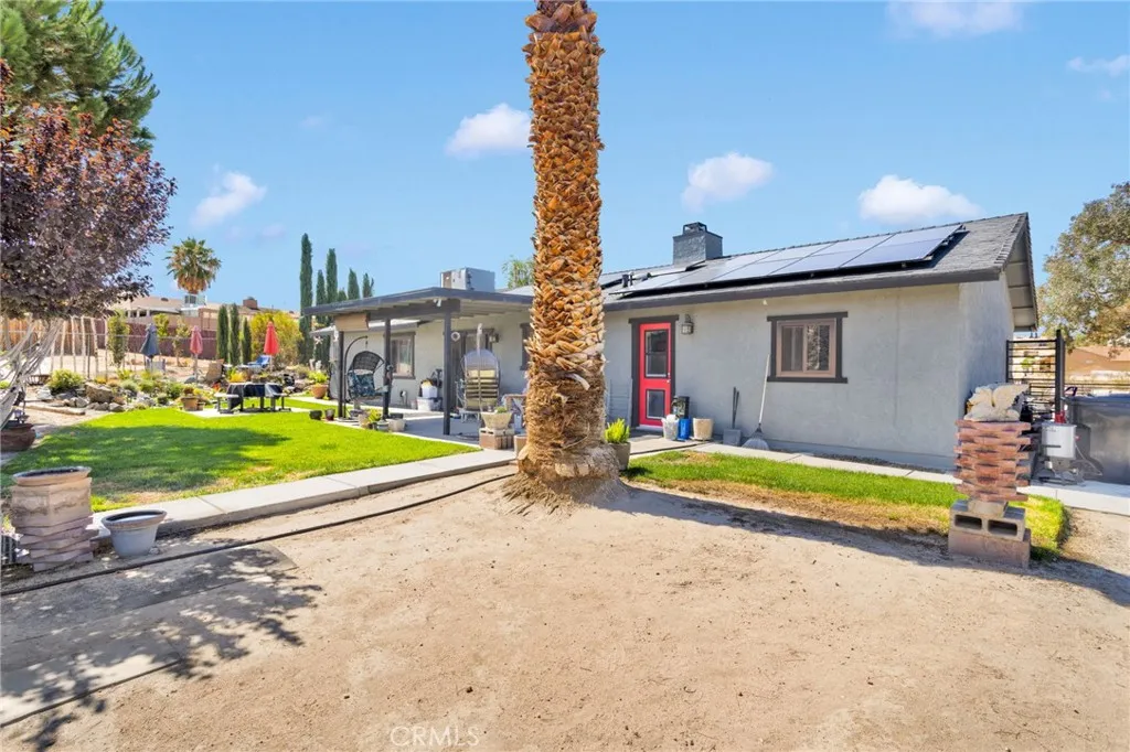 Welcome to your stylish 3-BEDROOM HOME WITH OFFICE, modern updates, and a relaxing outdoor retreat! This beautifully updated OPEN-CONCEPT 3 BED, 2 BATH home with an office offers versatile living space and tasteful finishes throughout. ** From the front, youll notice the CUSTOM FRONT FENCING with AUTOMATIC ROLLING GATE, wide driveway, fresh landscaping, and welcoming curb appeal. Inside, enjoy LAMINATE WOOD FLOORING throughout, a bright living room, and an open layout that flows seamlessly. Both bathrooms have been TASTEFULLY UPGRADED with updated tile, fixtures, and sleek finishes. Indoor laundry. ** The kitchen and dining areas connect effortlessly to the backyard, where youll find MULTIPLE SPACES TO RELAX AND ENTERTAINincluding a COVERED PATIO, TRANQUIL KOI POND, and an EXTRA SITTING AREA perfect for morning coffee or evening gatherings. ** Additional highlights include THREE STORAGE UNITS, SOLAR PANELS, RV PARKING with gated side access, and room for gardening or extra space. This home truly combines STYLE, COMFORT, and PRACTICALITY.