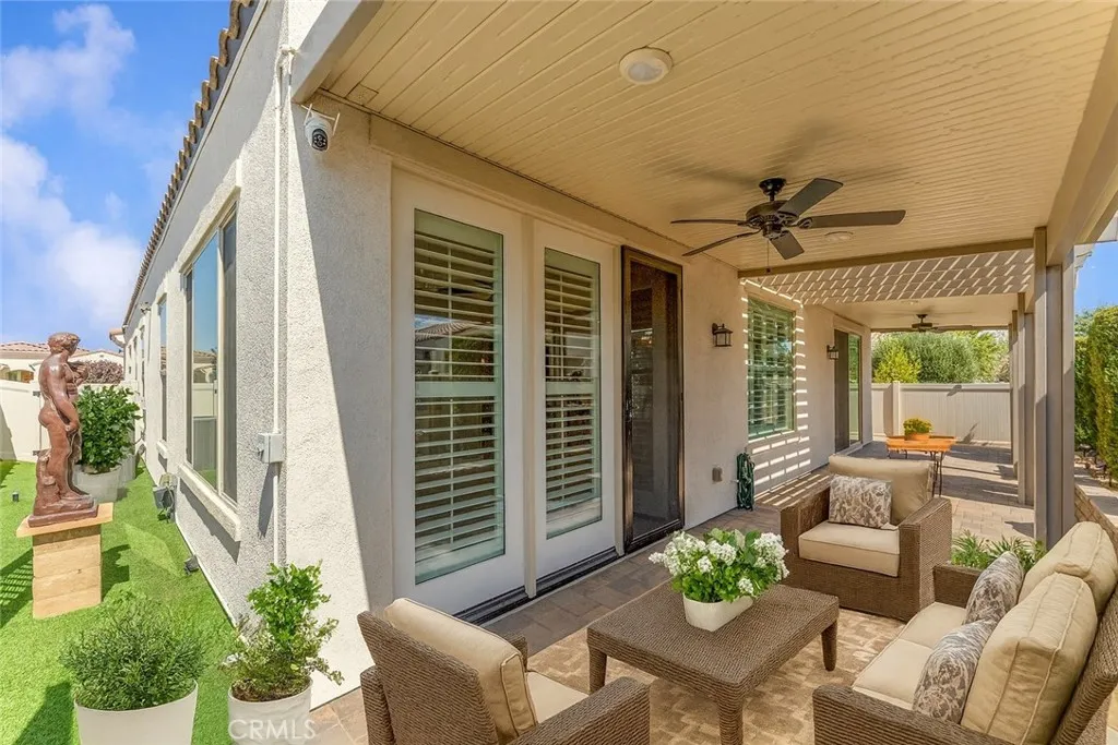 ***Seller will give $5000 credit toward closing costs**Nestled in the highly sought-after 55+ active senior community of Jess Ranch, this beautifully upgraded 3-bedroom, 2-bath home offers comfort, style, and security in a resort-like setting. Step inside to an open and bright floor plan enhanced with custom shutters, crown molding, and upgraded fixtures throughout. Both bathrooms have been tastefully remodeled, offering a modern and luxurious feel. The primary suite is a true retreat, featuring a custom closet organization system, while the hallway closet has been thoughtfully upgraded to maximize storage. The laundry room is fully equipped with custom cabinetry, and the home is being sold with all like-new appliances includedmaking this property move-in ready. Outdoors, youll enjoy a fully landscaped front yard and a private backyard retreat, perfect for relaxing or entertaining. Safety and peace of mind are ensured with custom security doors and cameras. The finished garage is an added bonus, complete with extra storage, ceiling fans, refrigerator, and workbench areaa perfect space for hobbies or projects. This home combines elegance, function, and security, all within a vibrant, gated community that offers resort-style amenities and a welcoming lifestyle. Dont miss the opportunity to make this exceptional property yours!