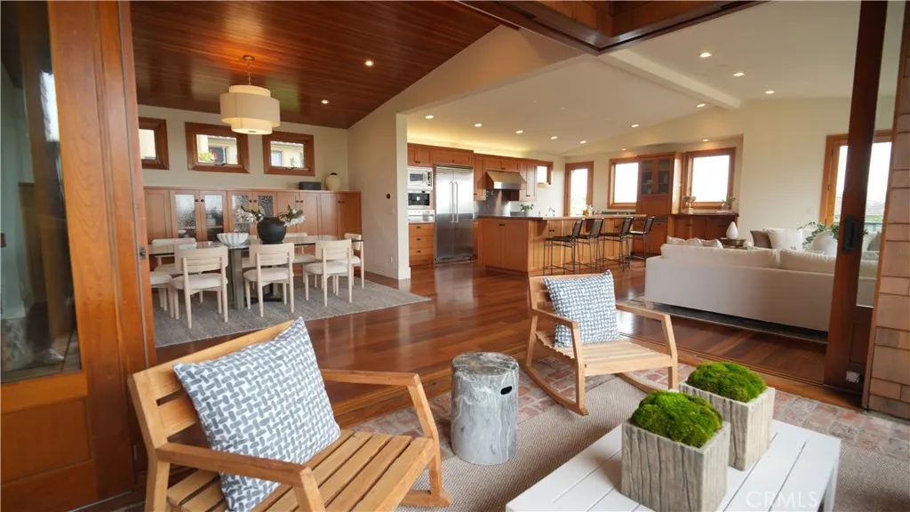 Coastal Craftsman Masterpiece: A Breathtaking Retreat! Prepare to be captivated by an exquisite blend of luxury and coastal charm in this Coastal Craftsman Masterpiece, expertly designed by Nick Schaar Homes & Building. Nestled in the prestigious Hill section, this residence offers stunning elevations and is ideally situated near the Sand section's greenbelt, pristine beaches, and the vibrant heart of downtown. As you step inside, youre welcomed by soaring vaulted ceilings and exquisite finishes that elevate everyday living to new heights. The dining room serves as a striking centerpiece, featuring abundant built-ins that seamlessly combine beauty with functionality. Culinary enthusiasts will be enchanted by the gourmet kitchen, which is a true chef's paradise. Adorned with stunning stone countertops and Viking and Miele appliances, it also boasts wall-to-wall windows that frame breathtaking panoramic ocean views, creating an inviting space for both cooking and entertaining. Step outside the dining room to a casual living space, ideal for gatherings or relaxation. Designed to showcase spectacular views, this outdoor oasis includes a cozy stone fireplace and disappearing sliding walls that effortlessly blend indoor and outdoor living. The luxurious primary suite is a true retreat, featuring a spa-like bathroom with a freestanding bathtub, a striking glass tile shower, and an expansive walk-in closet equipped with an innovative automatic rotating hanger system, along with an additional closet for enhanced convenience. This remarkable property epitomizes quality craftsmanship
