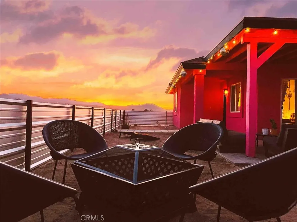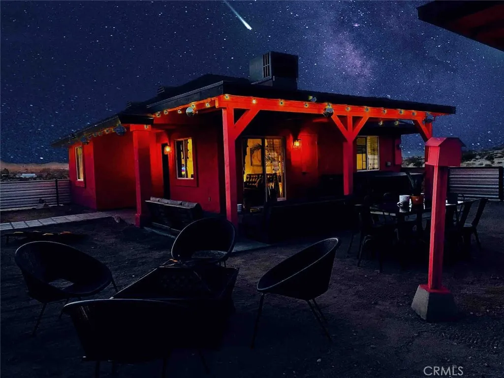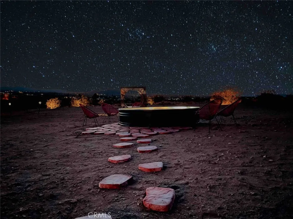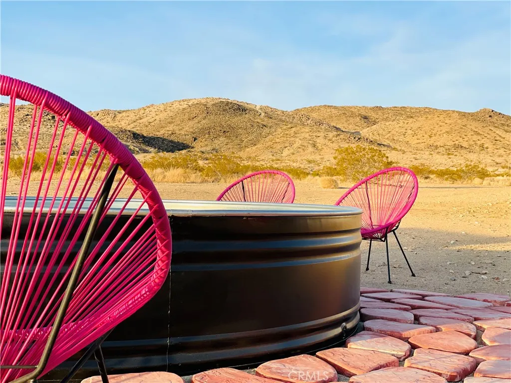 The desert getaway with youve been dreaming of has finally hit the market! Nestled in Landers in front of Goat Mountain, this modern retreat offers captivating unobstructed views and panoramic vistas that stretch for miles. Situated on a 2.5-acre lot and backing up to 490 acres of government land, it feels like having your very own 500-acre backyard! Whether you love hiking, biking, ATV adventures, or simply crave a private fortress of solitude, this is a rare opportunity you wont want to miss. Built in 2019, this 2 bedroom, 1 bathroom home spans almost 800 sq. ft. and is move-in readyjust bring your furniture (or offer to purchase existing). Inside, youll find stylish modern & sleek tile flooring throughout, and a bright living space that flows seamlessly to the outdoors through sliding glass doors. The kitchen is fully equipped with plenty of cabinet storage, granite countertops, and appliancesincluding a built-in microwave, oven, and dishwasher. Both bedrooms are generously sized, each featuring textured designer wallpaper, tile floors, and large windows framing serene desert views. Step outside to the covered patioperfect for BBQs, outdoor dining, or cozy evenings by the fire as you watch the stunning Landers sunsets. The property also includes a Hot Tub and 10 foot Oversized Cowboy Pool for Breathtaking stargazing nights under the endless desert sky. Located just off a paved road, youll be only a mile from the world-famous Integratron and Gublers Orchids, and right at the base of Goat Mountain. With stars stretching for miles, this desert gem is the ultimate place to r