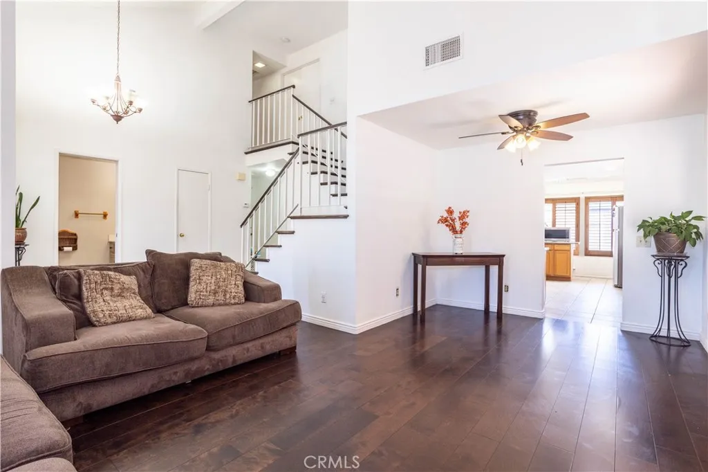 This beautiful home is nestled at the end of a quiet cul-de-sac in a great Palmdale neighborhood, and as soon as you step inside youll immediately recognize the owners true Pride-Of-Ownership. Here are just a few of its many other fine features: The custom front door with oval lead glass insert and matching side panels opens to a flowing 1,995 square foot open concept floor plan that is in Move-In-Condition with plantation shutters, and an aesthetic blend of veneer hardwood, tile, and carpet flooring. The spacious living room is bathed in natural light from multitude of windows which highlights the vaulted ceiling with lighted fan, and has a mantled gas-burning brick fireplace. The familys cook is going to appreciate the kitchens abundant cabinets, ample quartz counters, built-in stainless steel appliances, and the convenience of the adjoining dining room. Since the family room, currently being used as a dining area, with its breakfast bar flows seamlessly with the kitchen youll find it very easy to serve and entertain your guests simultaneously. A total of 3 bedrooms; 1 secondary bedroom has a walk-in closet. The grand suite has a custom lighted ceiling fan, large walk-in closet, land a well appointed full bathroom with dual sink mirrored vanity. 2 bathrooms; The bathroom is located on the first level for your guests. Second story bonus room. Functionally located laundry. Energy efficient dual pane windows will help keep your utility bills low and the interior quiet. Central heat & air for year-round comfort. Youre going to appreciate and enjoy the large backyards privacy