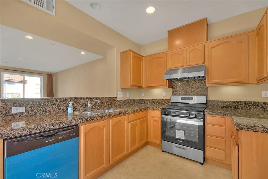Wonderful Celamonte condo offering 3 bedrooms and 3 1/2 bathrooms, boasting a generous interior square footage of 1436. (per tax roll) Spacious floorplan, flows nicely, this property features a convenient lower level bedroom with on-suite bathroom. Entertaining space of the home is a sizable living room, kitchen, dining area and separate indoor laundry room with additional storage cabinets overhead. Newly painted interior shows fresh and clean. The kitchen enjoys generous counter space to serve and prepare, granite counters, recessed lighting and plentiful cabinetry for storage. There is a kitchen exhaust fan instead of a microwave, brand new oven, brand new dishwasher and a new garbage disposal. Informal dining area off kitchen is perfect for casual secondary dining options. Comfortable living room space that opens to a balcony that overlooks the common greenbelt and trees of the complex. This property also has a new AC unit! There is a 2 car garage with options for extra storage needs. Primary bedroom has on-suite bathroom and walk in closet. Other upstairs bedroom also features on-suite bathroom. In addition, there is a powder room for guests. Community amenities include a sparkling pool and spa, outdoor patio tables and lounges to enjoy, a cozy community fireplace to relax by and a playground for the little ones. A short drive to the 71 freeway and also nearby to Butterfield Elementary School. Chino Hills is a highly desirable City known for its tranquil rolling foothills, award winning schools and much more!