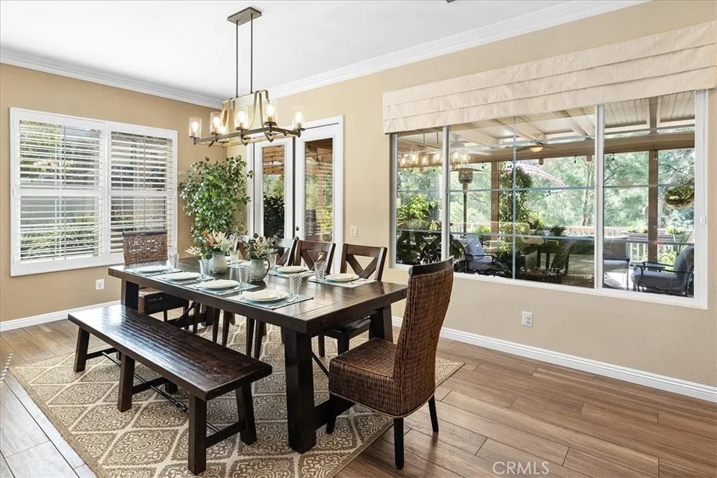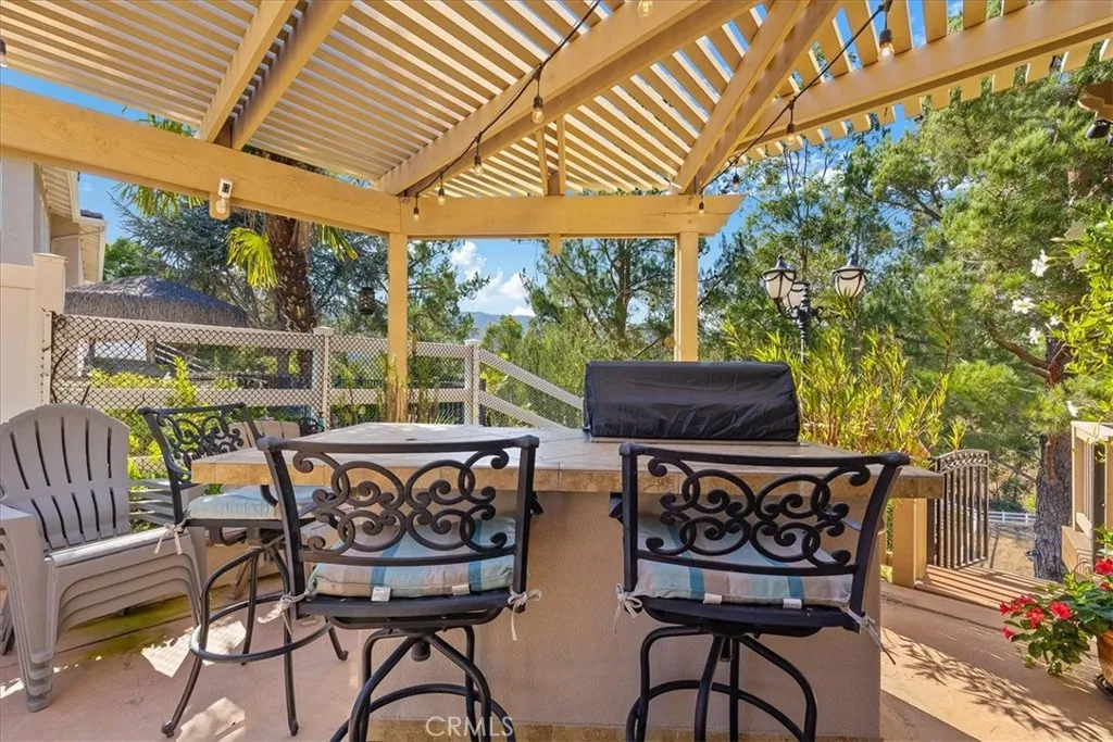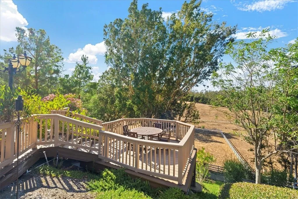 Welcome to 42926 Joshua Tree Court where luxury, and lifestyle meet. This stunning single-story home sits on a premium lot in the highly sought-after gated community of Olive Hill Ranch Estates in Murrietas quiet west side. Tucked away in a peaceful cul-de-sac, the property offers incredible views of surrounding mountains and a sense of seclusion. You will enter through a lovely courtyard with an outdoor fireplace and through beautiful iron and glass double doors. Inside, you will be delighted with the open floor plan that is designed for both comfort and functionality. The heart of the home is the spacious great room with a chefs kitchen, perfect for entertaining and everyday convenience. This well-appointed kitchen features granite countertops, stainles steel appliances, built-in fridge, a large center island, a walk-in pantry, a butlers pantry, and insta hot water. Additional features include a formal dining rooom, living roon, den, laundry room, mud room with courtyard and garage access, and a museum-quality 3-car garage outfitted with custom cabinetry and durable coated floors. The home is also energy-efficient with 32 fully owned solar panels. The primary suite opens to its own patio where you can enjoy some quite time. The primary bath has a large soaking tub and spacious walk-in shower. One of the secondary bedrooms has a full bathroom attached. Step outside to your private backyard retreat with a large, covered patio and deck extension, dual ceiling fans, built-in misting system, fire pit, above-ground spa, built-in BBQ kitchen, and outdoor TV setupperfect for mor