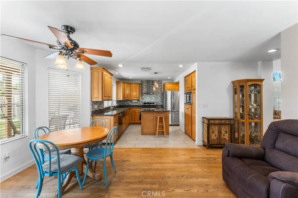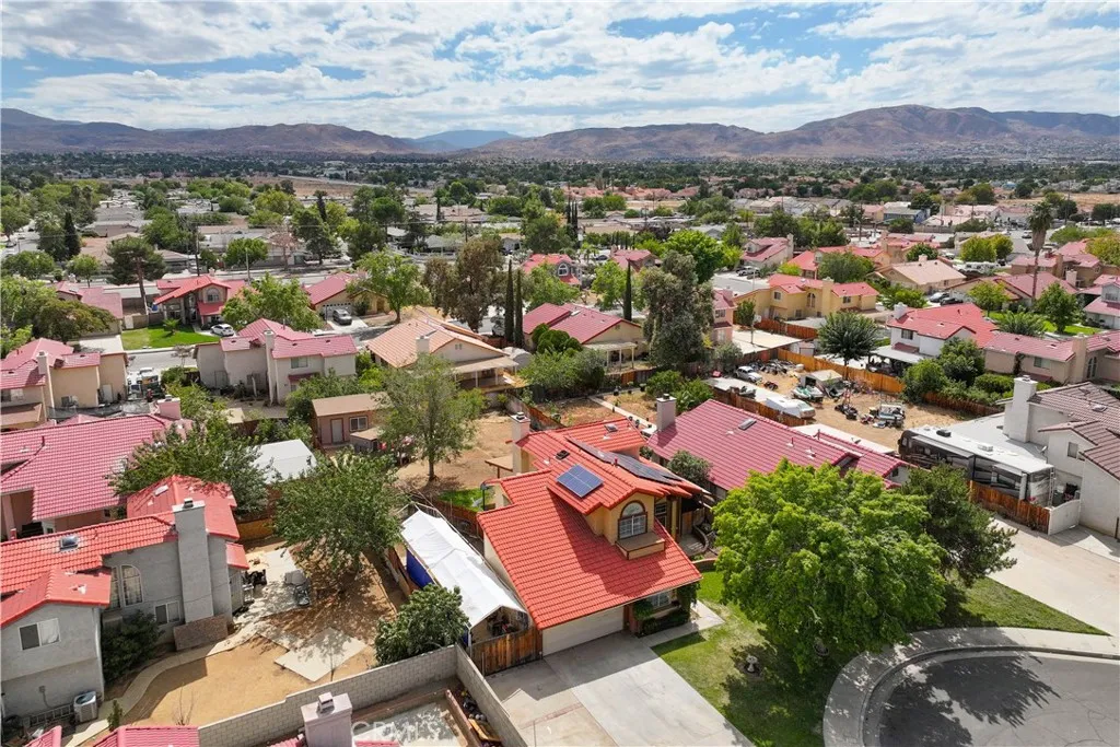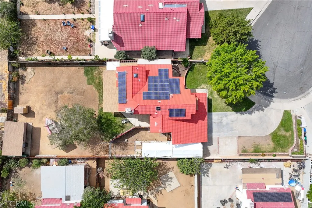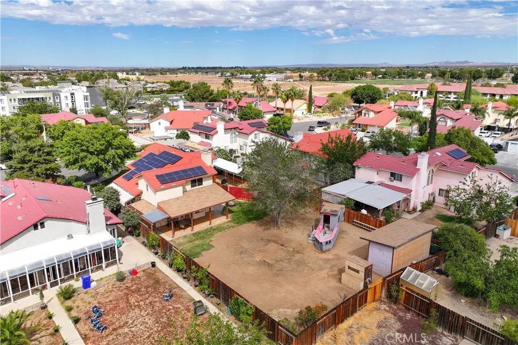 Welcome to this beautiful two-story home with paid off (SOLAR)this spacious 4-bedroom + bonus room, 3 bathroom home offering over 2,000 sq. ft. of living space tucked away on a quiet cul-de-sac. The inviting floor plan features a bedroom plus bonus room downstairs, perfect for guests or a home office. The kitchen features granite counter tops, stainless steel appliances, a farm sink, center island, backsplash, recessed lighting, and a window above the sink for the natural light. Enjoy cozy evenings by the gas fireplace, while the hardwood floors downstairs add warmth and character. Ceiling fans throughout the home provide comfort year-round. Step outside to a lush green backyard with mature trees, bushes, a covered patio, large storage sheds, and you're very own pink pirate playground perfect for entertaining or relaxing in your private retreat. The home also includes a deep driveway for extra parking but the big bonus is paid-off solar for energy efficiency. Don't miss this one schedule your showing today!
