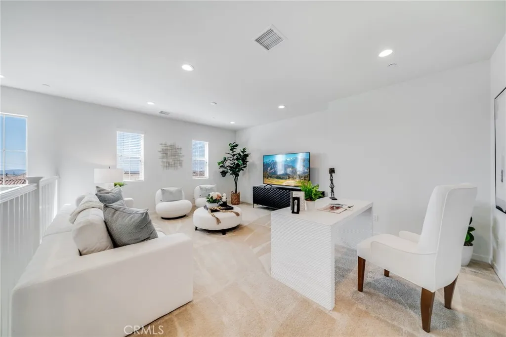 SELLER MOTIVATED!!!Welcome to this exquisite tri-level condo in the prestigious GATED COMMUNITY of Iron Ridge in Portola Hills. This beautiful home boasts 2,322 Sq. Ft of living space, 4 bedrooms, 3.5 baths, 2 car attached garage. On the first floor, you'll be greeted by an open floor plan that seamlessly connects the family room, kitchen, and dining area. The contemporary kitchen boasts white cabinets, a large island with bar-height counter seating, quartz countertops, stainless steel appliances, making it a chefs dream. The second level offers 3 bedrooms as well as 2 full bathrooms, a laundry room for your added convenience. The primary ensuite boasts double sinks with ample cabinet space, a walk-in shower, and a spacious walk-in closet. The Third level is designed for ultimate comfort and flexibility, with a versatile loft space ideal for a home office, theater, or easily converted into a fifth bedroom. This level also includes a guest bedroom, guest bathroom. Additionally, a large city park just outside the gates offers the perfect setting for evening sunsets, dog walks, or pickleball matches. With the majestic backdrop of Saddleback Mountain and proximity to top-rated schools, such as Portola Hills Elementary, this community provides a serene environment for relaxation, growth, and outdoor recreation. Enjoy the security and