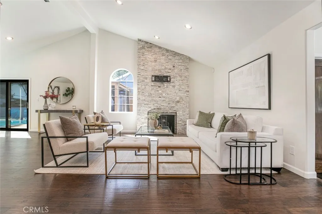 Welcome to this stunning four-bedroom, four-bathroom home, offering a perfect blend of elegance, comfort, and functionality. Step inside to a grand living room with soaring cathedral ceilings and a cozy fireplace, creating the ideal setting for both relaxing and entertaining. The inviting kitchen features a charming breakfast nook, while multiple living and dining areas flow seamlessly for everyday comfort. Upstairs, one of the bedrooms opens onto a private balcony overlooking the street, providing a perfect spot to unwind. Enjoy California living at its finest in the backyard retreat, complete with a sparkling pool, spacious patio, and a beautiful wooden deckperfect for hosting gatherings or simply enjoying the outdoors. Additional highlights include a circular driveway, gated entrance for privacy, and ample parking space. The property is also equipped with a fully paid-off solar system, offering eco-friendly living and reduced utility costs. This home combines thoughtful design with timeless appeal, making it a true standout.