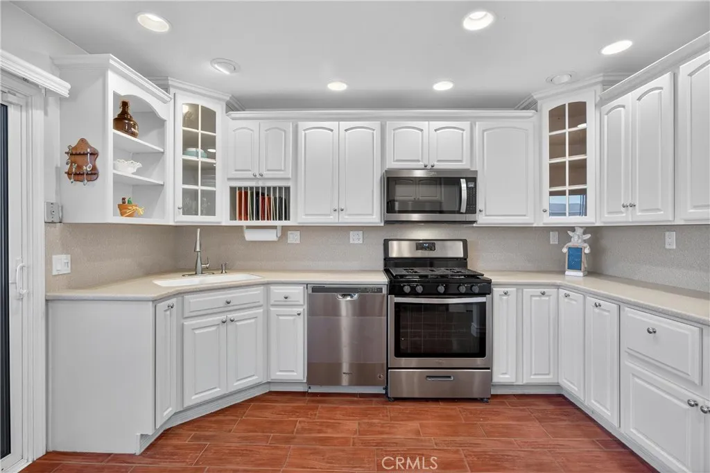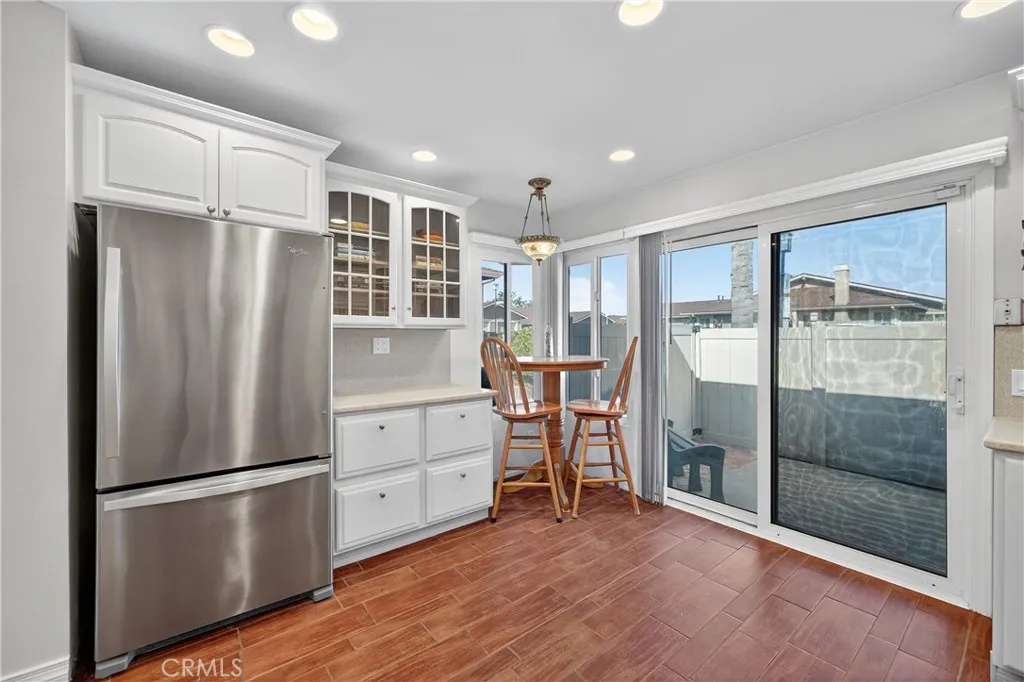 Freshly painted end unit with a beautifully updated kitchen, this single story home has much to love. It features two primary bedrooms, each with its own en suite bathroom and walk-in closet. One bathroom has a walk-in shower, the other has a shower in tub. Vaulted, scraped ceilings and recessed lighting set this home apart. The kitchen has been remodeled with updated cabinetry, countertops, and appliances (replaced within the last four years). This kitchen has lots of storage. Off the kitchen is one of two patios perfect for al fresco dining and entertaining. Big-ticket items have been taken care of, too a new HVAC system within the last five years and a new roof installed just three months ago give you peace of mind. Outside, youll find two patios, one covered patio off the living room has low-maintenance turf, the other off the kitchen connects to the garage. An additional parking spot is next to the garage. Magnolia Glen has an association pool. Less than one mile to I-15, grocery stores, Starbucks, restaurants, and public transportation.