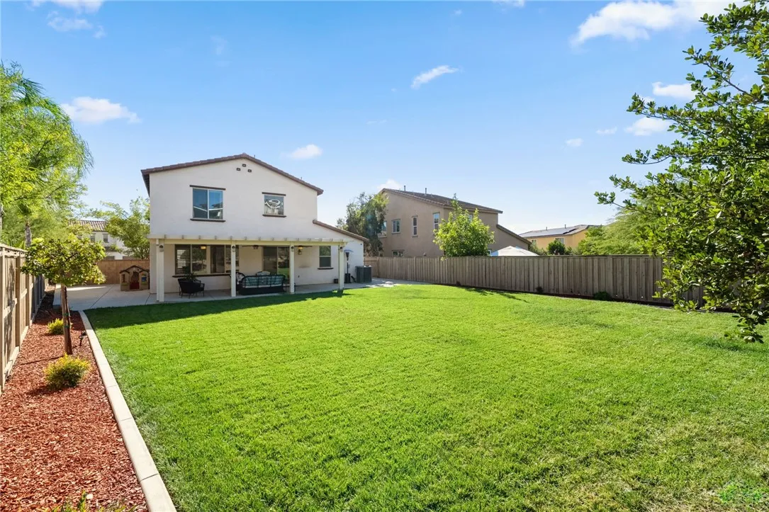 Welcome to this stunning 4-bedroom, 2.5-bath home offering 2,293 sq. ft. of stylish living space on a generous 9,583 sq. ft. lot. From the moment you enter, youll be captivated by the beautiful flooring throughout and a dramatic showpiece staircase that sets the tone for the rest of the home. The open-concept layout features a spacious kitchen flowing into the dining and living areas perfect for both everyday living and entertaining. Upstairs, the primary suite offers a private bath and walk-in closet, while three additional bedrooms provide plenty of space for family, guests, or a home office. Step outside to a large Alumawood patio, ideal for relaxing or entertaining in the expansive backyard with room for gardening, play, or even a future pool. A 3-car tandem garage offers ample space for parking, storage, or a workshop. Located just minutes from top-rated schools, beautiful community parks, and exceptional HOA amenities including resort-style pools, a splash pad, sports courts, open fields, and so much more this home delivers comfort, style, and an unbeatable lifestyle. Don't miss your opportunity to own this move-in-ready gem in one of the areas most desirable neighborhoods!