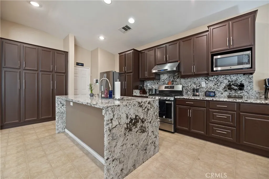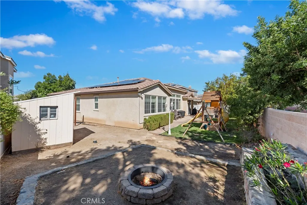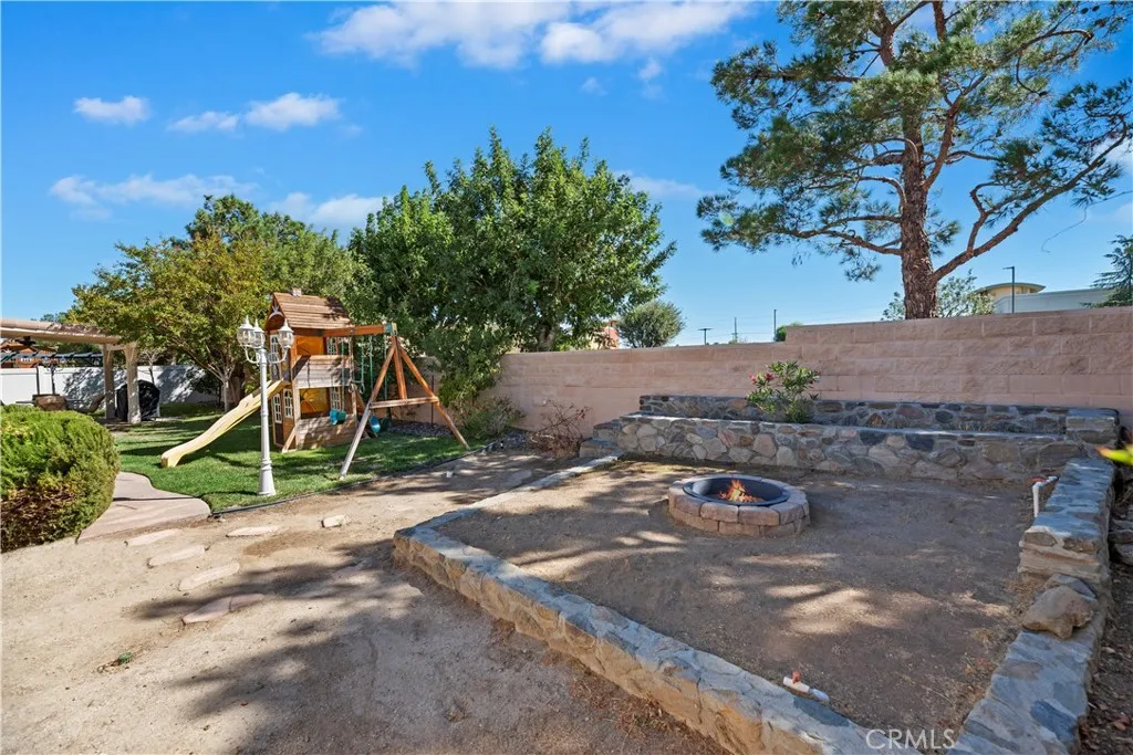 Welcome to this charming Spanish-style, solar-powered single-story home with beautiful mountain views. Built in 2010, this home offers 3 bedrooms, 2 full bathrooms, and 1,855 SqFt of living space on a 7,107 SqFt lot -- perfect for families and first-time buyers looking for comfort and convenience. Inside, youll find high ceilings, recessed lighting throughout, and an open layout designed for everyday living. The remodeled kitchen is a true highlight, featuring granite counters, stainless steel appliances, an oversized island, and a dining area that flows right into the family room. Whether youre hosting friends or just hanging out after a long day, this space makes it easy. Step outside to a backyard built for relaxing and entertaining. A covered patio with a ceiling fan and stamped concrete sets the scene, while the lush landscaping includes fruit trees (apples, nectarines, peach, pomegranate), a rosemary bush, two working decorative street lamps, a stone-framed firepit area, and a handy shed for all your garden tools. The quiet neighborhood gives you a sense of retreat, yet youre just minutes from schools, the 14 Freeway, Antelope Valley Mall, and plenty of shopping, dining, and healthcare options. Its the best of both worlds -- peaceful suburban living with commuter-friendly convenience. This home brings together style, practicality, and a great location all in one inviting package!