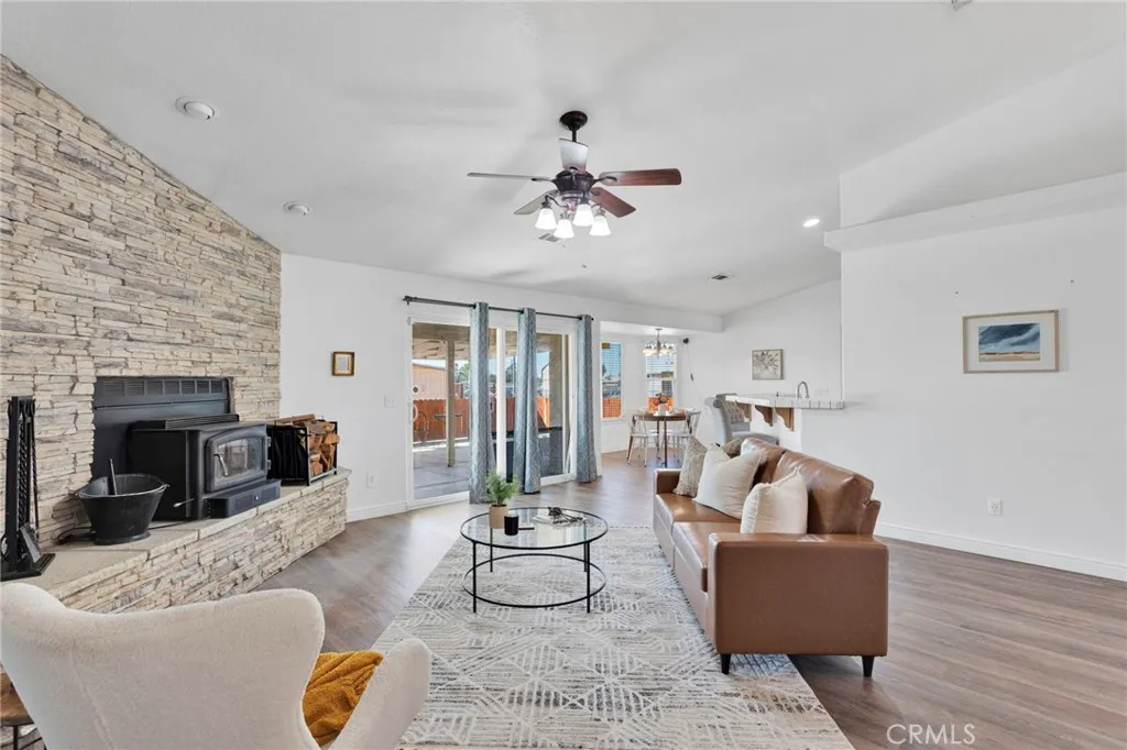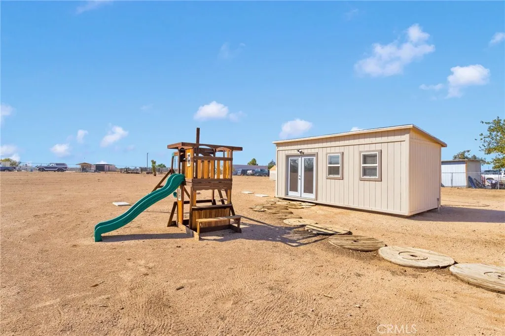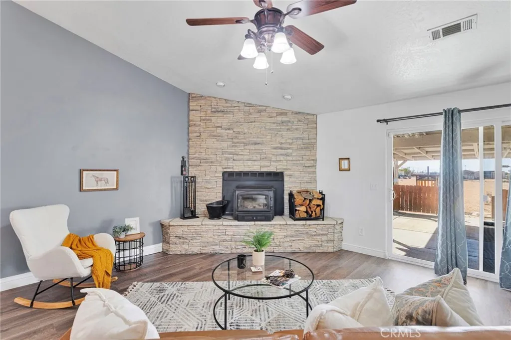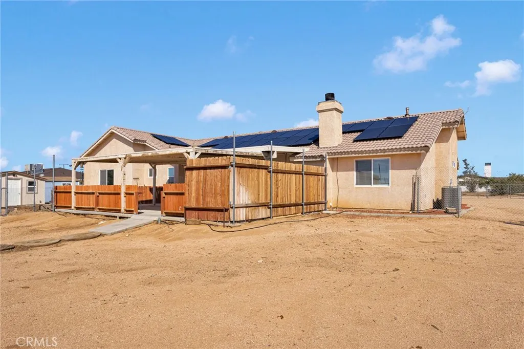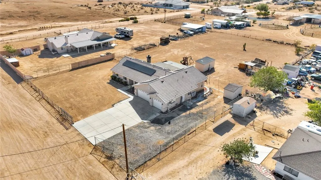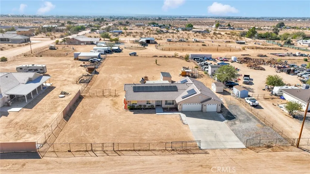 **CLOSING COSTS ASSISTANCE AVAILABLE** The Apple Valley home that fits all your family's needs and wants! This home comes with PAID FOR SOLAR, saving you money monthly with 49 panels and not just one, but two back up batteries! A large kitchen with newer appliances openly flows into your kitchen nook and family room that offers a wood burning stove to keep you warm on chilly desert nights! The primary suite is located off of the kitchen with a large walk in closet adjoining a bathroom finished with dual vanities and a soaking tub with a private shower! The additional three bedrooms are located on the other side of the home with a full bathroom tucked in between! The property offers a fully fenced one acre lot with a covered patio perfect for entertaining and expansion! Looking for room to work or run your home business? Additional space for guests? You'll love the fully finished secondary structure equipped with recessed lighting, flooring and a mini split! A custom built chicken coop is ready to help kickstart your dream of a family home stead alongside a fully finished storage unit to allow for ample storage! Ready to tour this home? Scroll down for contact information and call the listing agent, Emily Lamping directly!