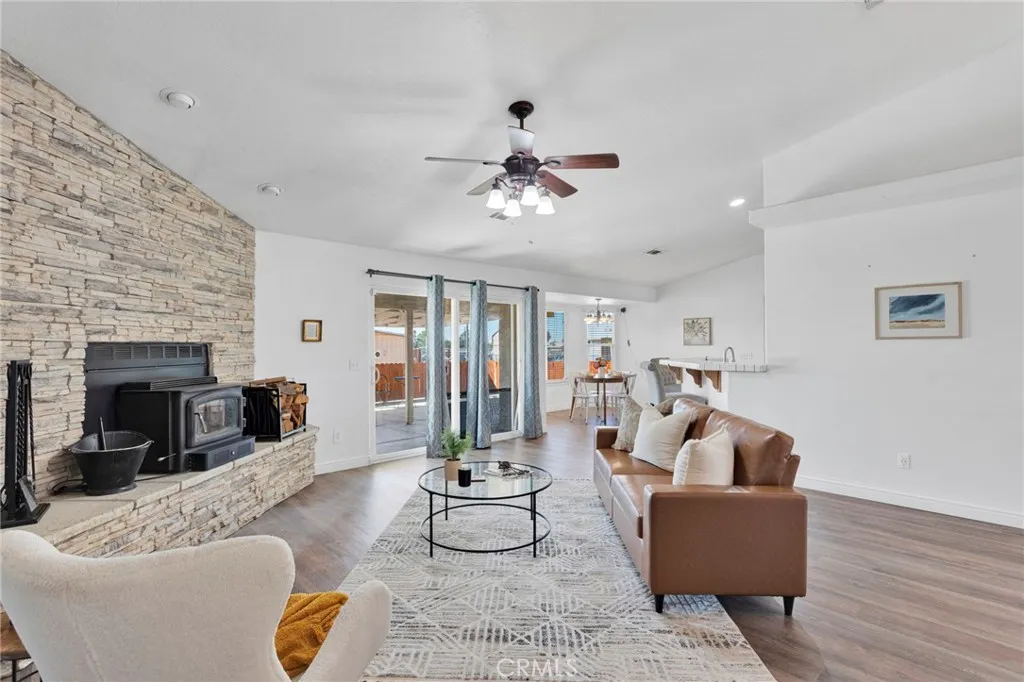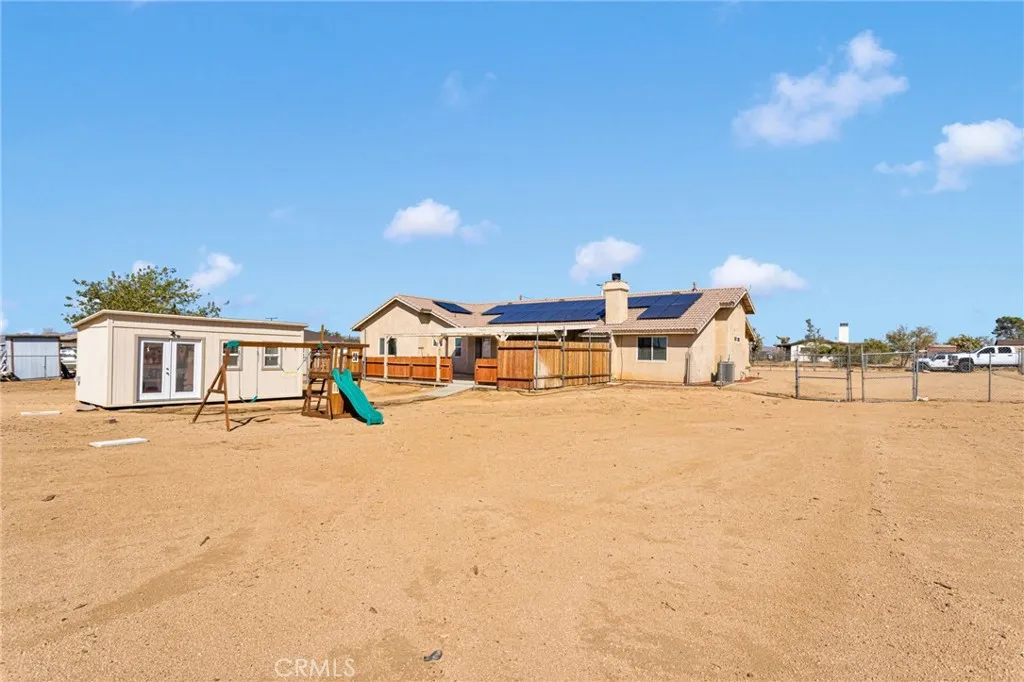 The Apple Valley home that fits all your family's needs and wants! This home comes with PAID FOR SOLAR, saving you money monthly with 49 panels and not just one, but two back up batteries! A large kitchen with newer appliances openly flows into your kitchen nook and family room that offers a wood burning stove to keep you warm on chilly desert nights! The primary suite is located off of the kitchen with a large walk in closet adjoining a bathroom finished with dual vanities and a soaking tub with a private shower! The additional three bedrooms are located on the other side of the home with a full bathroom tucked in between! The property offers a fully fenced one acre lot with a covered patio perfect for entertaining and expansion! Looking for room to work or run your home business? Additional space for guests? You'll love the fully finished secondary structure equipped with recessed lighting, flooring and a mini split! A custom built chicken coop is ready to help kickstart your dream of a family home stead alongside a fully finished storage unit to allow for ample storage! Ready to tour this home? Scroll down for contact information and call the listing agent, Emily Lamping directly!