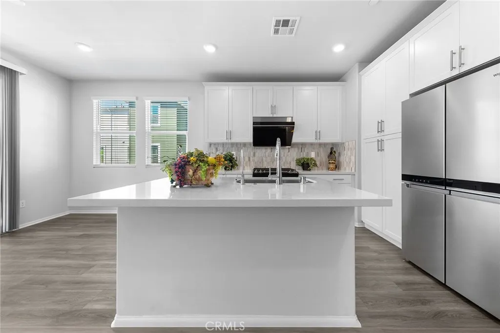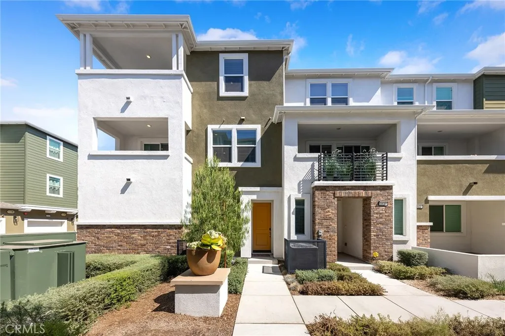 Low tax rate and low HOA. Paid off solar system helps save energy costs. This stunning 2024 built end unit condo is filled with natural light throughout. It offers 2 bedrooms and 2.5 bathrooms with a thoughtfully designed layout: First Floor: Oversized side-by-side two-car garage with additional storage space. Second Floor: Upgraded kitchen featuring white cabinets, white ice quartz countertops, and luxury appliances. The spacious living room flows seamlessly into the dining area with access to a relaxing balcony, plus a convenient half bath for guests. Third Floor: 2 bedrooms and 2 bathrooms, the spacious master suite with a walk-in closet, dual vanity sinks, and a private balcony. The secondary bedroom is served by a full bath, along with a laundry closet equipped with washer and dryer. Conveniently located near shopping, restaurants, banks, schools and with easy access to freeways I-10 and 605. Come to see this charming home.