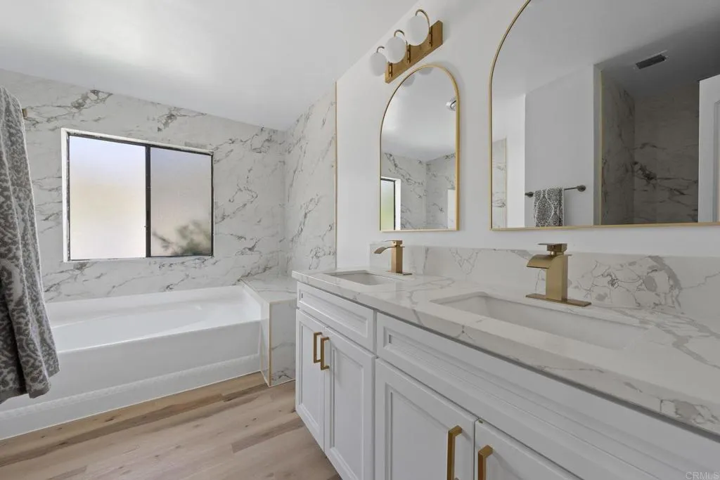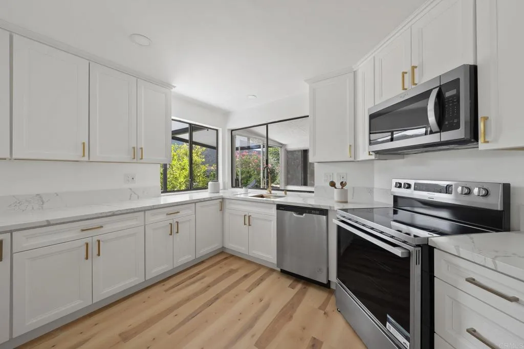 VIEWS VIEWS VIEWS!! This home is situated in the coveted Champagne Village. YOU OWN THE LAND! 2 tandem covered parking spaces. ALSO, guest parking near this unit as well! This absolutely Stunning Home is completely renovated! 2 bedroom 2 bath home features a remodeled Kitchen with new shaker style cabinets, Quartz counter-tops, new stainless steel appliances, luxury vinyl plank flooring, updated bathrooms, new interior and exterior paint. Amenities include pickleball, tennis, bocce ball, swimming pool, fitness room, putting green, dog park, and many fun planned activities. Champagne Village is adjacent to the world-famous Welk Resort! You will feel like you are on vacation every day! Gated community with all the amenities one could ask for.