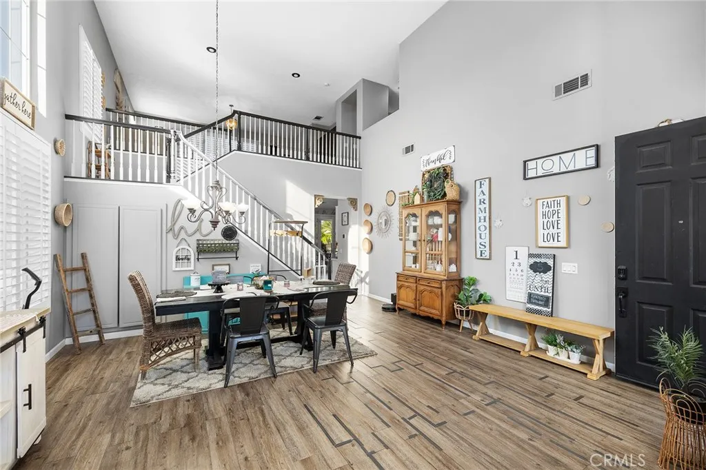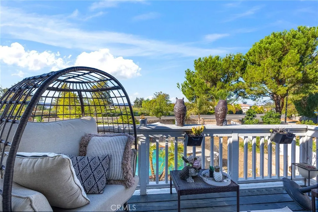 This Murrieta pool home located in The Golf Club at Rancho California Community sits on an expansive 11,000+ square foot lot in a desirable cul-de-sac location and features fully paid-off Tesla solar roof tiles for energy-efficient living with a Tesla car charger and no HOA fees. The thoughtfully designed 4-bedroom, 3-bathroom floor plan offers main-level convenience with a guest bedroom and full bathroom downstairs, perfect for visitors or multi-generational living. The home showcases an open-concept family room seamlessly connected to the kitchen, complete with a charming fireplace for cozy gatherings, while the formal living room impresses with soaring vaulted ceilings and flows into an elegant formal dining room ideal for entertaining. Upstairs, you'll discover a versatile loft space, two generous secondary bedrooms, and a luxurious master suite featuring a spa-like master bathroom and an exceptionally spacious walk-in closet. Step out onto the private deck off the master bedroom to enjoy breathtaking views and peaceful mornings. The backyard has a covered patio providing shade for outdoor dining, plus a pool and relaxing spa where you can unwind and enjoy the Southern California lifestyle year-round and no rear neighbors.