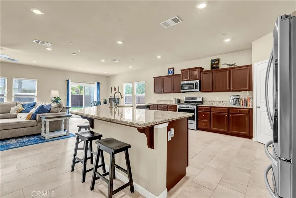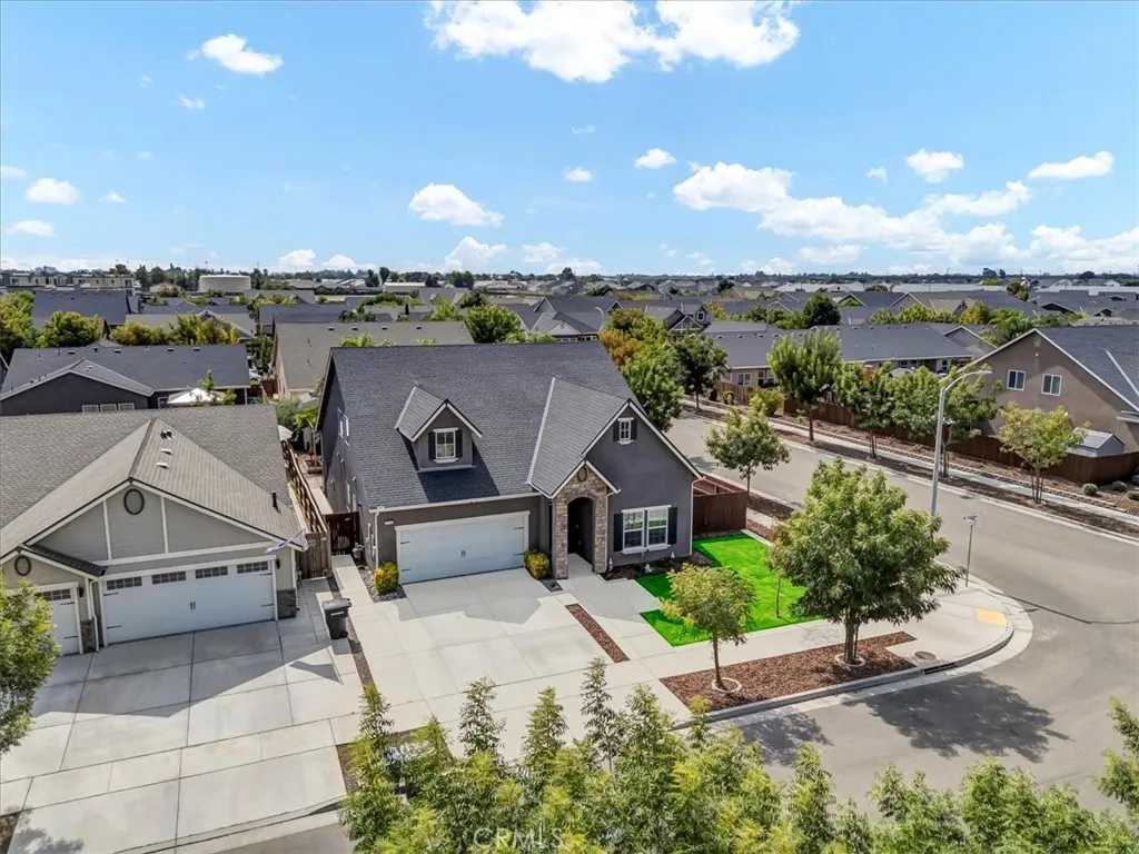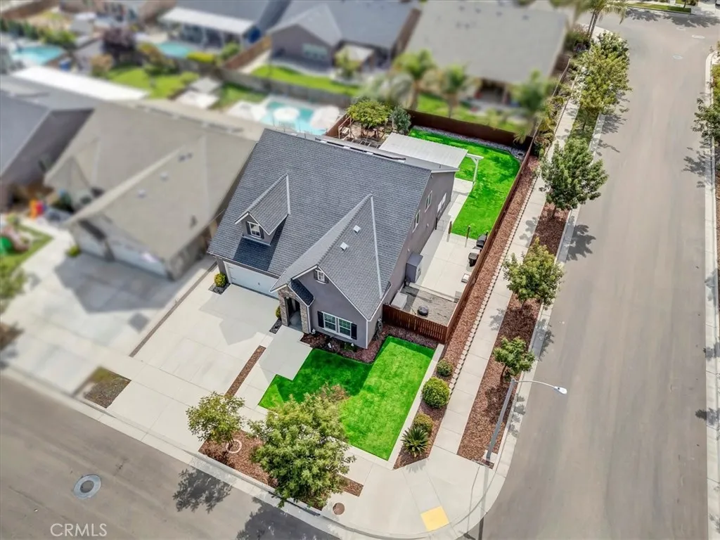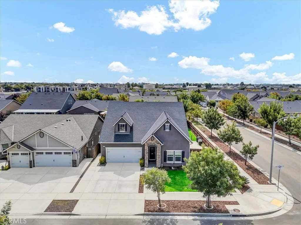 Gorgeous two-story home with modern upgrades and an assumable VA loan at just 2.5%! This property features owned solar and sits on a desirable corner lot in a premier Northwest Hanford neighborhood. Step outside to a thoughtfully designed backyard with a gated garden area, built-in planter boxes, chicken coop, lush landscaping, covered patio, grass area, and a designated dog run. Inside, natural light and tall ceilings create an inviting atmosphere. The home boasts a spacious front living room, an oversized family room, and a chefs dream kitchen with a massive center island. Upstairs, the luxurious primary suite offers dual vanities, a soaking tub, a standing shower, and a large walk-in closet. Youll also find a versatile loft and three additional spacious bedrooms, each styled with designer finishes and premium carpet and tile. Conveniently located near shopping, premier schools, great restaurants, and just a quick drive to NAS Lemoore. This home truly has it allstyle, function, location, and unbeatable financing options. Bath count is different than tax records. Buyer to verify.