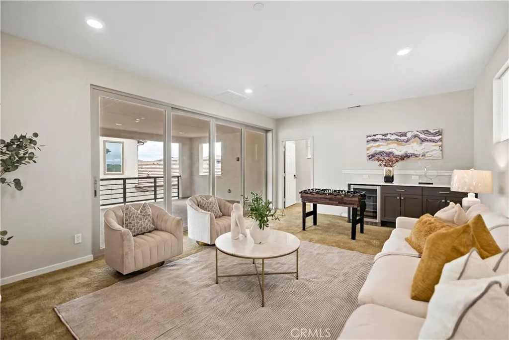 Stunning tri-level condo located in the highly desirable Cadence Park community within Irvine's Great Park. This bright and private corner unit offers 3 bedrooms, 2 full bathrooms, 1 half bathroom, and a spacious third-floor loft that can be used as a bonus room, office, or optional 4th bedroom. The open-concept floor plan seamlessly connects the living, dining, and kitchen areas with multiple balcony retreat spaces ideal for indoor/outdoor living and entertaining. The gourmet kitchen boasts gray cabinetry, stainless steel appliances, and a large center island with bar seating. The luxurious primary suite includes a walk-in closet and a spa-like en-suite bathroom with dual vanities and designer tile flooring.Located just minutes from Cadence Park School, Portola High School, community parks, pools, playgrounds, and trails. Zoned for award-winning Irvine Unified School District. Enjoy the best of Great Park living in this turnkey home.