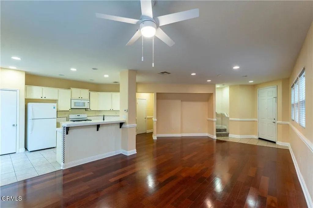 This beautifully maintained home is located in the desirable Santa Clarita Valley. Featuring a versatile open loft in place of the traditional fourth bedroom, the residence offers flexible living space ideal for a home office, play area, or entertainment room.The main level and primary bedroom showcase gleaming hardwood floors that create a warm and inviting atmosphere. The bright kitchen includes a pantry and breakfast bar and opens to the dining area and backyard, making it perfect for entertaining or everyday family living.Upgrades throughout include chair rails, beadboard accents, tall baseboards, and a combination of hardwood and tile flooring. The backyard and front yard feature stamped concrete and artificial grass, providing an attractive, low-maintenance outdoor space.Residents enjoy community amenities such as a pool, spa, showers, and a tot lot, offering a well-rounded lifestyle for families and individuals alike.