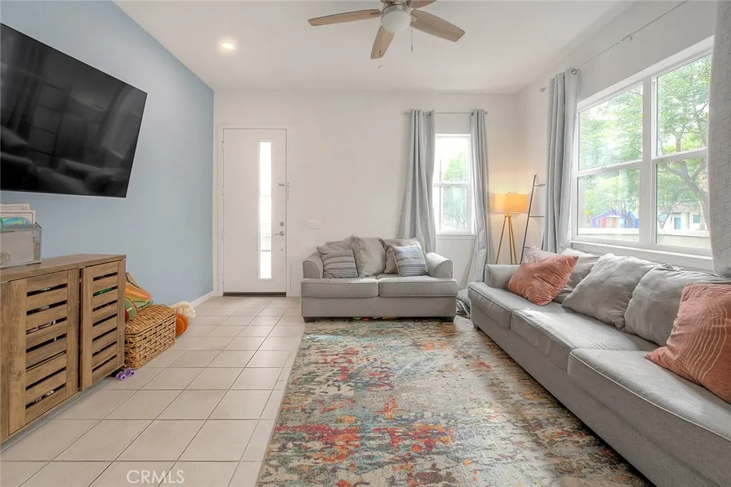 Welcome to 9412 Shade Place, a stylish 2020-built, end unit condo in the highly desirable master-planned community of The Resort in Rancho Cucamonga. With approximately 1,955 sq. ft. of modern living space, this home features 4 spacious bedrooms, 2.5 bathrooms, and a versatile third-story loft that can easily serve as a bonus room, media space, or home office. Step inside to an open-concept floor plan where natural light flows through the living and dining areas. The gourmet kitchen offers a clean, timeless look with crisp white cabinetry, quartz countertops, stainless steel appliances, and a custom backsplashdesigned for both function and style. The seamless flow makes it perfect for everyday living and hosting gatherings. Upstairs, the primary suite is a private retreat with a walk-in closet, dual vanities, and a glass-enclosed shower. Additional two bedrooms are roomy and adaptable, while a convenient upstairs laundry room simplifies daily routines. Modern energy-efficient features include a tankless water heater and a whole-house fanideal for cooling the home without always relying on the A/C. The 2-car garage is finished with epoxy flooring, ceiling-mounted storage racks, and extra built-in storage space. Living at The Resort means access to incredible amenities: The Club on 6th features a resort-style pool and spa, fitness center with yoga room, conference spaces, event rooms, complimentary coffee bar, kids playroom, fire pits, BBQ grills, and even a dog wash station. Multiple dog parks and monthly community events, like the local farmers market, create a vibrant neig