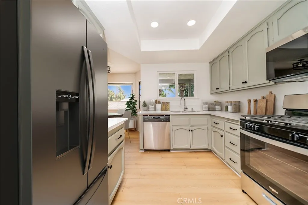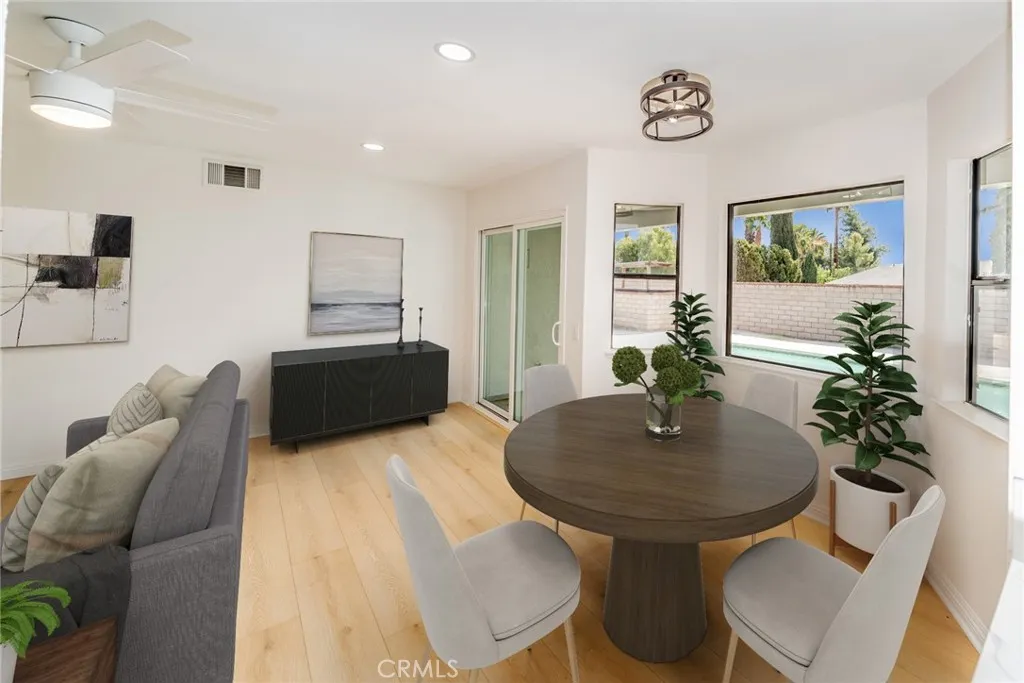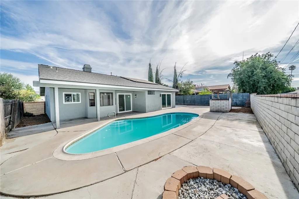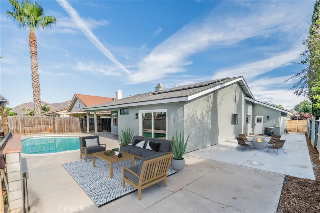 Welcome to Your Dream One-Story Pool Home in Moreno Valley! Discover the perfect blend of comfort, style, and functionality in this beautifully upgraded single-story residence, ideally situated on a spacious 7,405 sq. ft. lot. Offering 4 spacious bedrooms and 2 updated bathrooms, this home is designed for everyday living and memorable gatherings. Step into the inviting family room, where a cozy fireplace and abundant natural light create a warm and welcoming atmosphere. The home features new laminate flooring, fresh interior and exterior paint, new ceiling fans, and recessed lighting, all contributing to a sleek and contemporary look. Both bathrooms have been stylishly updated with new vanities and modern showers for a spa-like feel. The kitchen is a true highlight, showcasing freshly painted cabinets, new quartz countertops, a custom tile backsplash, and all-new stainless-steel appliances, sink, and fixturesperfect for both cooking and entertaining. Outside, enjoy fresh landscaping in the front and backyard, complemented by a sparkling swimming pool and covered patio, ideal for summer barbecues and entertaining family or guests. Additional upgrades include new side gates for added privacy and security. Parking and storage are a breeze with the attached 3-car garage. The home is conveniently located near schools, shopping, restaurants, and freeway access, making daily life easy and enjoyable. This move-in ready property has it alldont miss your chance to make 24345 Moonraker your forever home. Schedule your showing today!