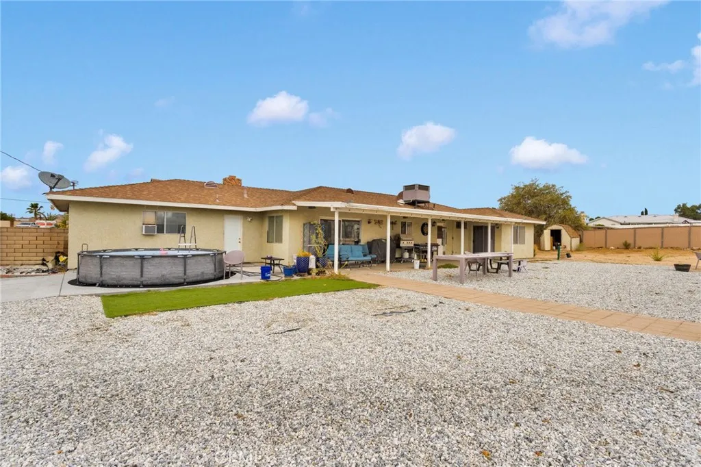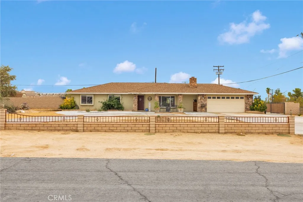 Welcome to this well-maintained 1,672 sq. ft. home nestled on just under an acre in a highly sought-after area of Apple Valley. This charming property features 3 spacious bedrooms and 2 bathrooms, with a finished bonus room in the garage that offers the potential for a 4th bedroom or home office. Enjoy the convenience of ample storage, with two storage sheds in addition to a 2-car garage. The back patio roof has been recently re-shingled, giving you added peace of mind. The property is fully fenced and cross-fenced, featuring a beautiful masonry brick wall with a wrought iron header in the front yard that complements the rockwork on the homes front pillars. A horseshoe driveway provides easy in-and-out access for you and your guests. Situated at the end of Mendota Road, which is a dead end just past the property, youll benefit from minimal through trafficideal for families with young children. Located just minutes from the Apple Valley Golf Course, this home offers both tranquility and convenience. If you're looking for a prime location, a tight-knit neighborhood, and a lovingly cared-for home, this is your opportunity. Don't miss outschedule your private tour today!