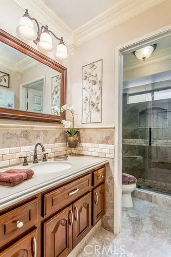 Oh my word!!! Have you been looking for a stunning executive style, single story home, close to everything to call your own??? Then PLEASE come and see this beauty. Located within a stone's throw from the High, Middle and Elementary schools, and also just a few short minutes from Arrowhead Regional Medical Center, churches, shopping and dining, this is the definition of "centrally located". From the minute you pull up to this beauty, the curb appeal is immediately impressive. The front gate is remote controlled, with elegant combination of ironwork and stone fence. Inside the fence, the well manicured front yard invites you to come on in, up the stamped walkway to the impressive double doors. Step inside to this welcoming home which has been upgraded in every imaginable way. From genuine hardwood floors throughout, to elegant crown molding in every room, as well as plantation shutters throughout. The beautiful kitchen is sure to inspire even the shyest of cooks. In the winter, relax by the impressive fireplace with a beautiful granite and wood surround.... Both bathrooms have been beautifully updated and features floor to ceiling tile and beautiful granite counters. Through the side french doors off the kitchen, you're led to an entertainer's paradise out back. The stamped concrete and tiled back yard has a patio cover that runs the entire width of the house, and features an outdoor kitchen with custom barbeque grill, sink, tortilla plate and much more. No expense has been spared on this beauty, so come and make it your own today, you'll be so glad you did!!!