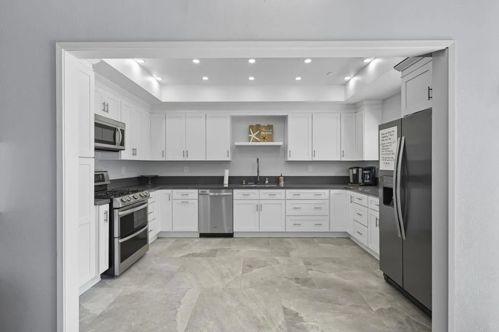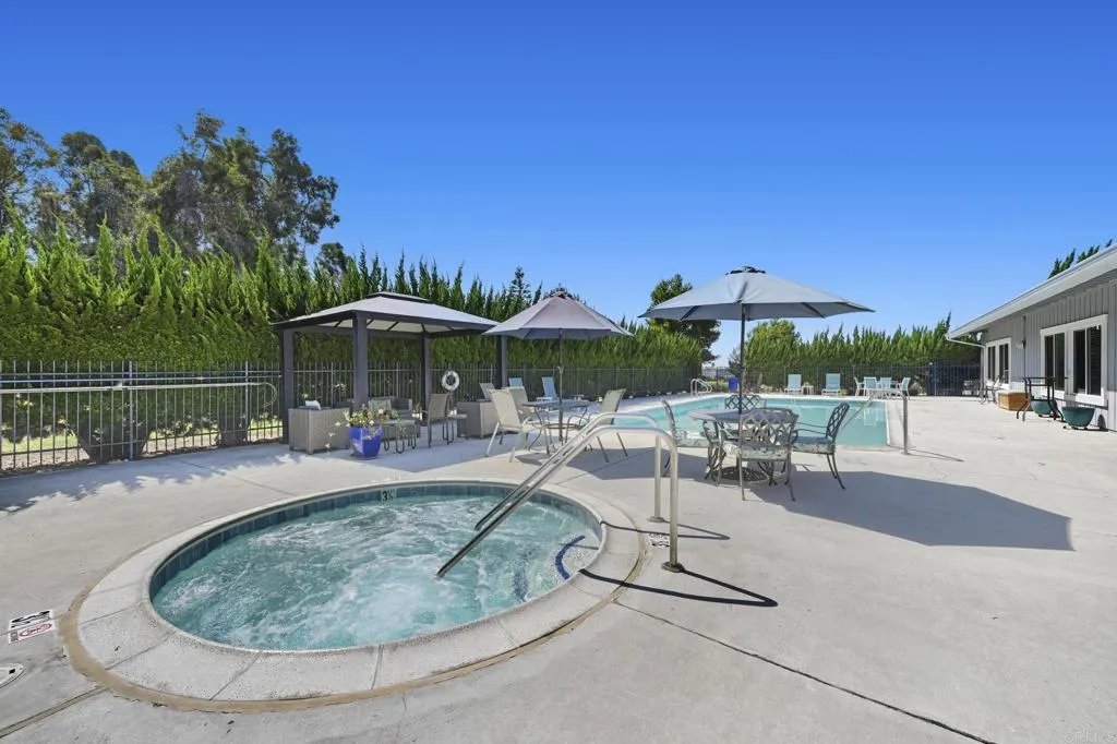 Experience the perfect harmony of privacy, comfort, and convenience in this beautifully updated single-story end unit, nestled within one of Oceansides most desirable 55+ communities. With no neighbors behind or beside you and set against a lush, manicured greenbelt adorned with mature landscaping, this home offers a rare and peaceful retreat. Enjoy unbeatable proximityless than 5 minutes to El Corazon Senior Center, the historic Mission San Luis Rey, and top retailers including Ralphs, Vons, Stater Bros., Walmart, and Lowes. Youll also find a wide selection of dining options and essential medical facilities nearby, including Tri-City Hospital. In just 1015 minutes, explore the vibrant downtown Oceanside with its new resorts, or escape to scenic lakes and one of Californias premier harbors for fishing and recreation. Step inside to a tastefully remodeled kitchen featuring quartz countertops, a stainless steel farmhouse sink, and newer appliances including a 5-burner gas stove and microwave. The flexible floor plan includes a cozy carport-patio area and a one-car attached garage finished with drywall. Recent upgrades include fresh interior paint, elegant wood plank flooring, and two fully renovated bathrooms with modern tile and walk-in showers. A heavy-duty washer and gas dryer (approx. 4 years old) are also included. Just steps from your door, indulge in the communitys resort-like offerings: a sparkling pool, relaxing jacuzzi, and welcoming clubhouse. Stay active in the well-equipped fitness center, or simply soak in the tranquil coastal ambiance and open neighborhood view
