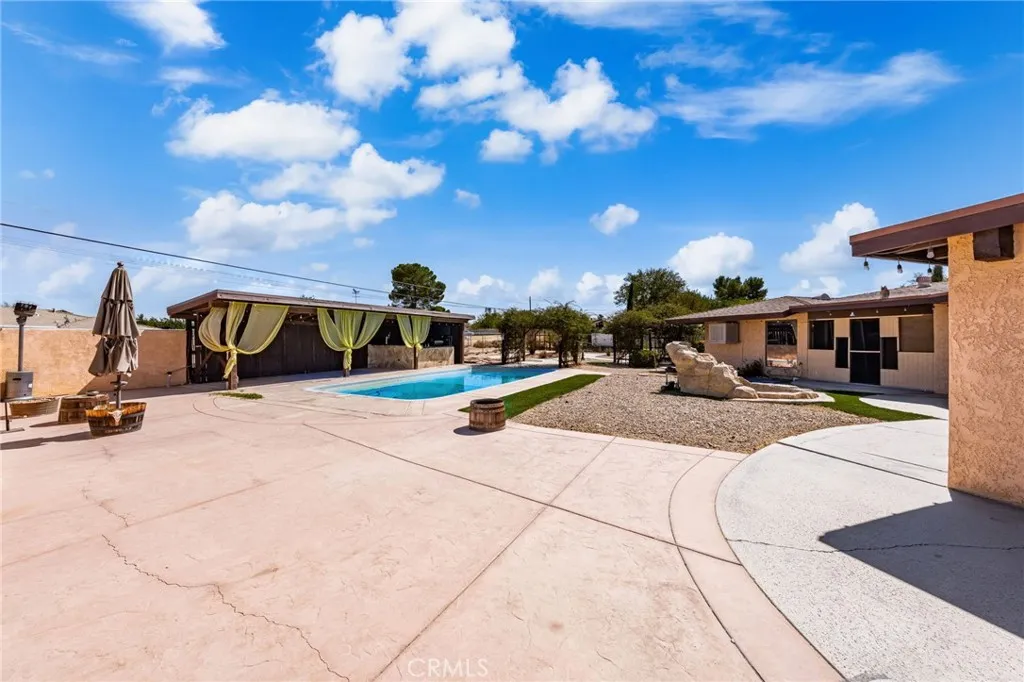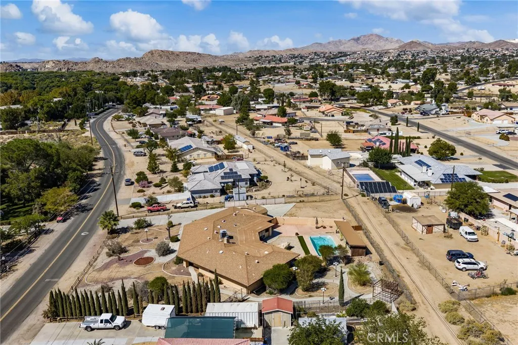 Discover this expansive and one-of-a-kind residence nestled on Riverside Drive one of the most desirable locations in the High Desert. This home offers incredible potential to create your dream retreat. Enjoy outdoor living at its finest with a fully equipped outdoor kitchen, perfect for entertaining family and friends. Cool off in the inviting pool or relax in the enclosed patio, providing a private oasis to un wind year-round. Located directly across from the riverbed, you'll appreciate the tranquil views and natural surroundings. Zoned for horses and adjacent to scenic horse trails, this property is ideal for equestrians or anyone seeking a rural lifestyle with plenty of outdoor space. The large lot provides ample room for riding, stabling, and outdoor activities. Located in a sought after school district, this home combines rural charm with convenient access to education and community amenities. Whether you're an equestrian enthusiast , someone looking for a unique property with great potential, or simply seeking a peaceful setting, this Riverside Drive estate has it all.