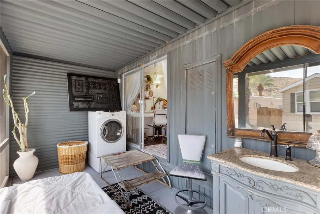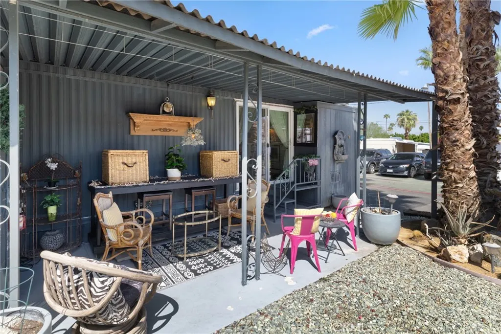 This completely remodeled shabby chic mobile home is located on a prime corner lot in an all-ages Palm Springs community. With plenty of natural light streaming through large windows, the home offers an open-concept layout that combines vintage charm with modern updates. The tasteful, shabby chic furniture throughout the home is included, making it move-in ready. Enjoy the screened-in patio, perfect for relaxing or entertaining, and take full advantage of the community amenities, including a sparkling pool, rejuvenating spa, and a clubhouse. Whether for seasonal living or year-round comfort, this home provides a perfect desert retreat!