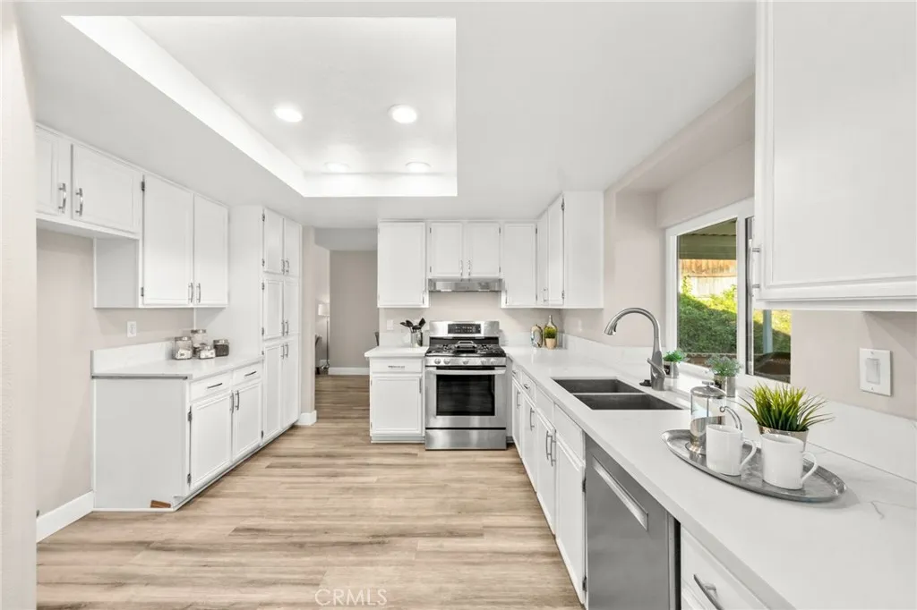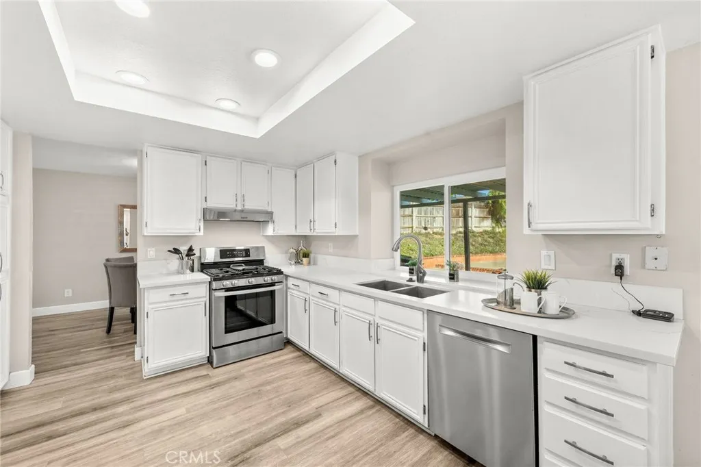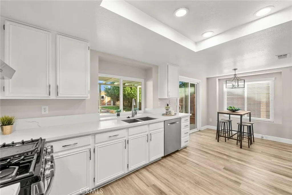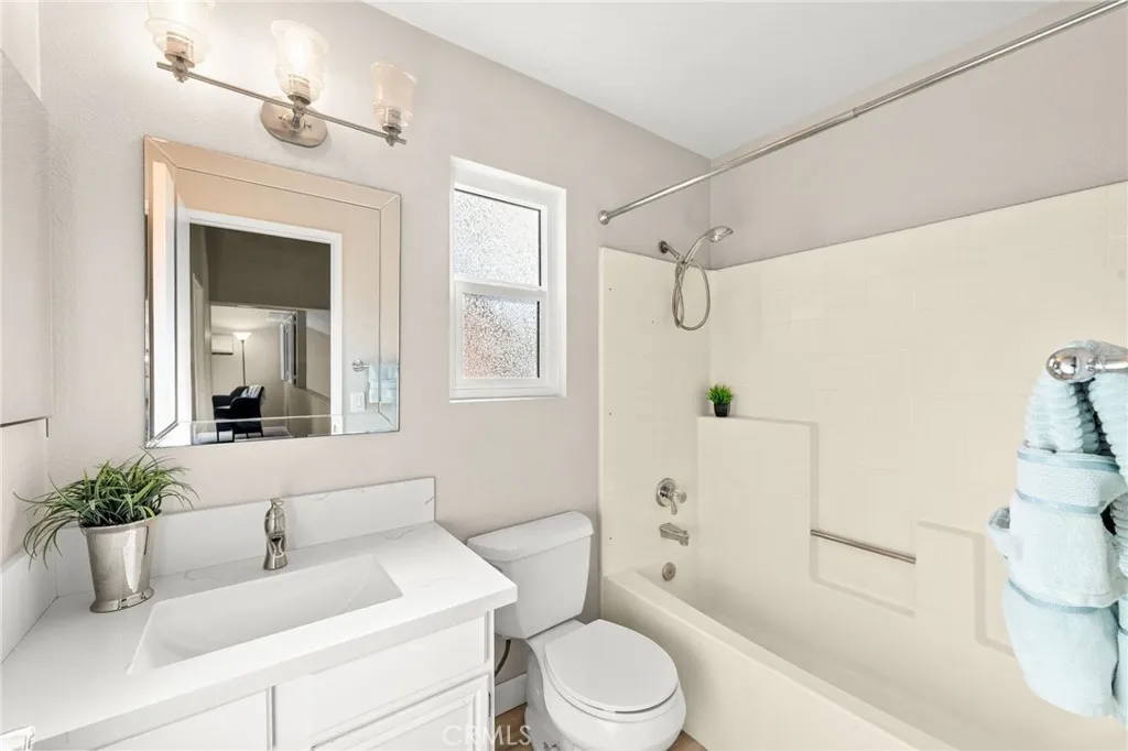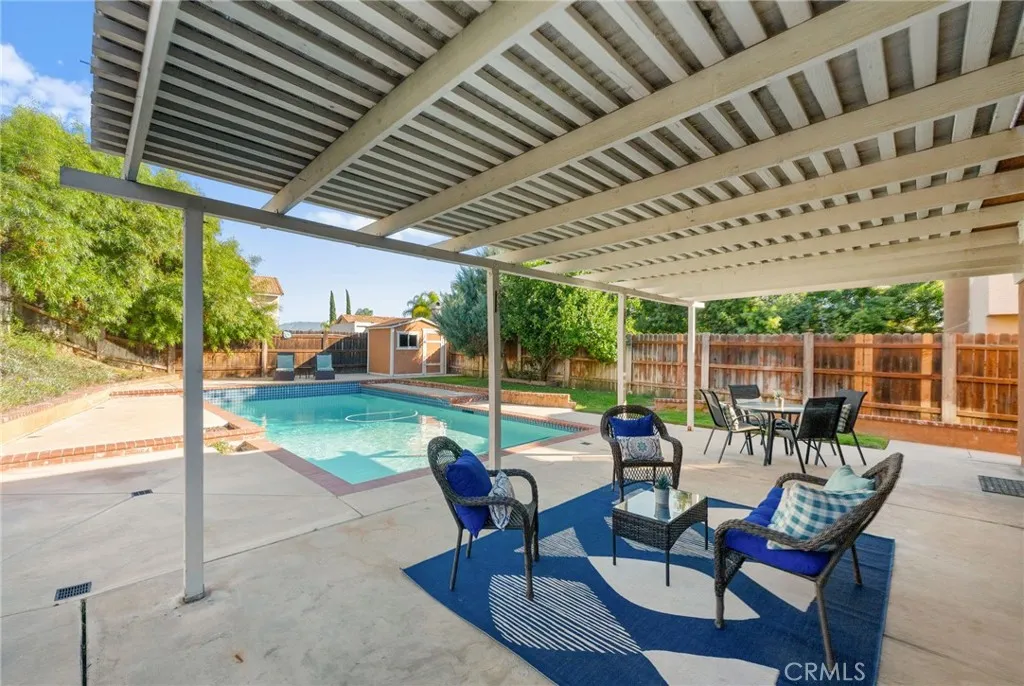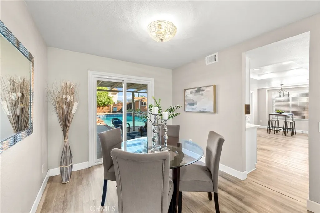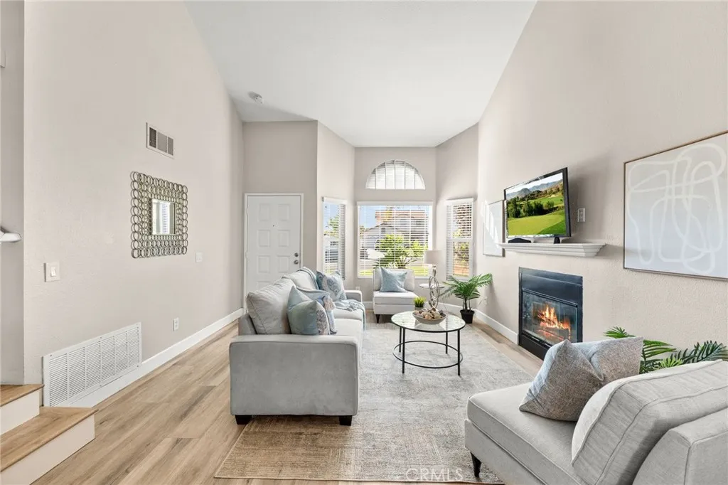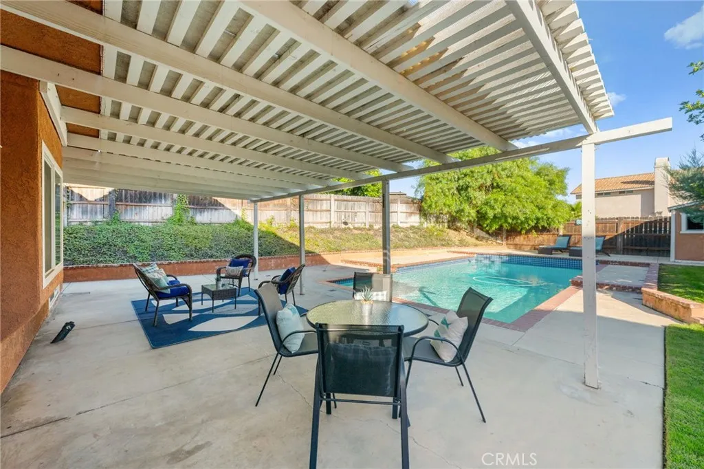 Remodeled Temecula Pool Home! Located on a sunny suburban street, this 3 Beds / 2.5 Baths, 1458 Sq Ft property offers both a family-focussed & modern layout with refreshed features to match. Travel up the front porch past the new dual-pane bay window overlooking well-manicured flower beds. Once inside, follow the chic dove grey laminate floors into the living room & notice the two-story ceilings showering the entry with natural light. Continue past the spacious living room into the kitchen's sliding glass access to the backyard built for tranquil gatherings with family & friends. The multi-level patio stretches from the covered patio area surveying the masonry-coping pool stretching to the far end of the backyard where the raised patio section seats another group of loved ones. Back inside, trek the mod stairs to the second level where the distinctive layout of each bedroom welcomes a seamless flow of sunlight & a lofty feel that overlooks the first floor. The addition of the plantation shutters and curtain allows versatility to use the open space as a loft or 4th bedroom. Reset & relax in the master bedroom where sliding glass closet doors reflect the brightness of the large picture window & the updated dual-sink vanity offers space to pamper yourself in style. Additional bedrooms each feature a new dual-pane window & modern light fixtures, plus a full bathroom with a stylish updated vanity. Addtn'l features include: attached 2-car garage with fresh white automatic door, powder room, Spanish tile roof, fresh paint, new windows, minutes from Temecula shopping & nature reser