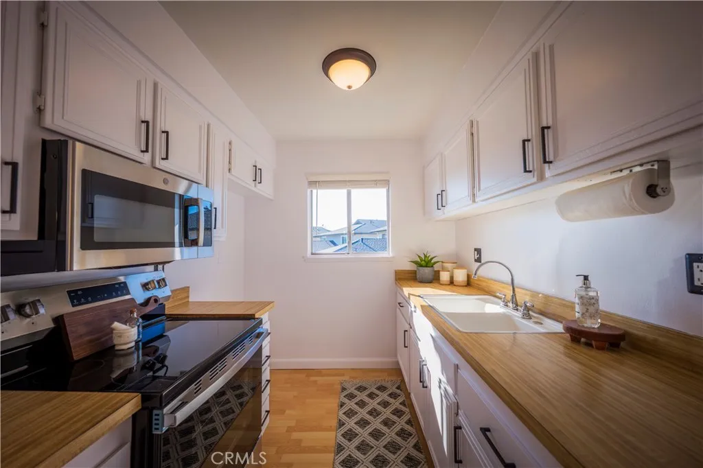 Welcome to Surf City-Huntington Beach, CA! This adorable upper-level 2-bedroom, 1-bath condo in the Huntington Gardens community is an excellent opportunity to own a home close to the beach. The unit features fresh paint, new light fixtures, laminate wood-like flooring, central heating, and a brand-new range and microwave. You will enjoy beautiful sunsets and ocean breezes on your front balcony. With the garage directly below, you'll have a dedicated parking space in a shared garage, along with convenient on-site community laundry. The home offers plenty of natural light, abundant storage, and views of the beautifully maintained community grounds, with additional open parking available for guests. Located in Huntington Beach with easy freeway access, the property is just a short drive to Huntington and Bolsa Chica State Beach, the popular Bella Terra shopping center, and other convenient shopping and dining options, as well as the wetlands. Reasonable HOA fees and FHA and VA approval make this home a wonderful opportunity. Don't wait! Reach out for your private tour today!