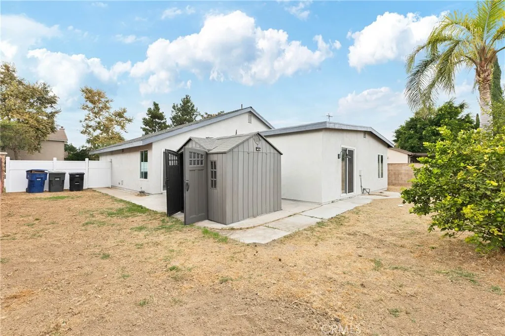 ..Fully remodeled and move-in ready......New, new, new designer paint inside and out!!l.....Brand new A/C (will be installed after acceptance of offer for security reason) and HVAC.......Gourmet kitchen is presented with new Quartz counter, new sink, new faucet, lots of cabinets,and brand new Appliances.......Energy efficient double pane windows and the patio slider door......New Luxury Vinyl plank flooring everywhere including hallway and the bathrooms.....New Berber Carpet in bedrooms.....New closet doors and baseboards.....Garage is newly dry walled and painted, and comes with roll-up garage door with auto opener, and a washer and a dryer.....Both bathrooms are offered with new lights, re-glazed full tubs, new vanity and a new toilet......Large back yard has sturdy and secure block wall fences and the large storage shed is a definite plus!!! Notice the new vinyl fence and the gate in the front.....Front door is to the left through the wooden gate which guarantees the maximum security for the home owner......Sprinklers are also new in the front and on auto timer, and will be green soon with new grass!!! New Epoxy coating for garage floor is a highly desirable feature......Fantastic location as the La Sierra freeway access, Shopping malls, and school, and all entertainment spots are so close by.......Super quiet neighborhood!!!........NO HOA......