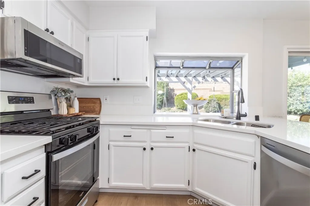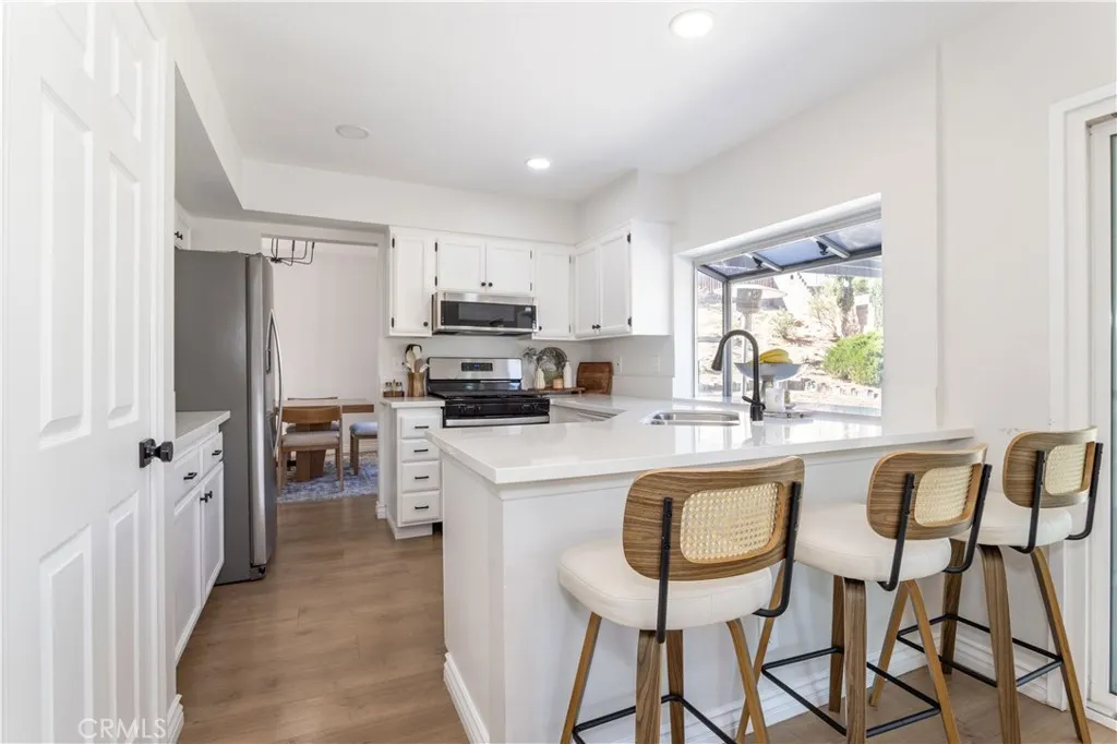 This beautiful home is nestled at the end of a quiet cul-de-sac in one of West Palmdales most sought-after neighborhoods, and as soon as you lay your eyes on it youll immediately recognize he owners true Pride-Of-Ownership. Here are just a few of its many other fine features: Lush landscaping, colorful planters, and stone faade enhance its eye-catching curb appeal . Youll step into a sunlit 1,924 square foot open concept floor plan that is in Move-In-Condition with soaring vaulted ceilings, striking architectural accents, new light fixtures, and a complementary blend of new vinyl and plush carpet flooring with new baseboards. Spacious living room accented by the staircase with custom railing. The familys cook is going to truly appreciate the recently updated kitchens recessed lighting, large garden window, abundant cabinets, pantry, new quartz counters, new built-in stainless steel appliances, durable dual basin stainless steel sink, breakfast bar, sit down breakfast alcove with direct patio access, and the convenience of the adjoining formal dining room. Since the family room with its gas-burning fireplace flows seamlessly with the kitchen youll find it easy to serve and entertain your guests simultaneously. All 4 bedrooms have new ceiling fans; The downstairs bedroom has its own full bathroom making it perfect for guests. The grand suite has a large walk-in closet with built-in organizers, and a sumptuously appointed bathroom with large dual sink mirrored vanity with new fixtures, soaking tub, custom tiled glass enclosed shower with new door, and private commode. All 3 ba